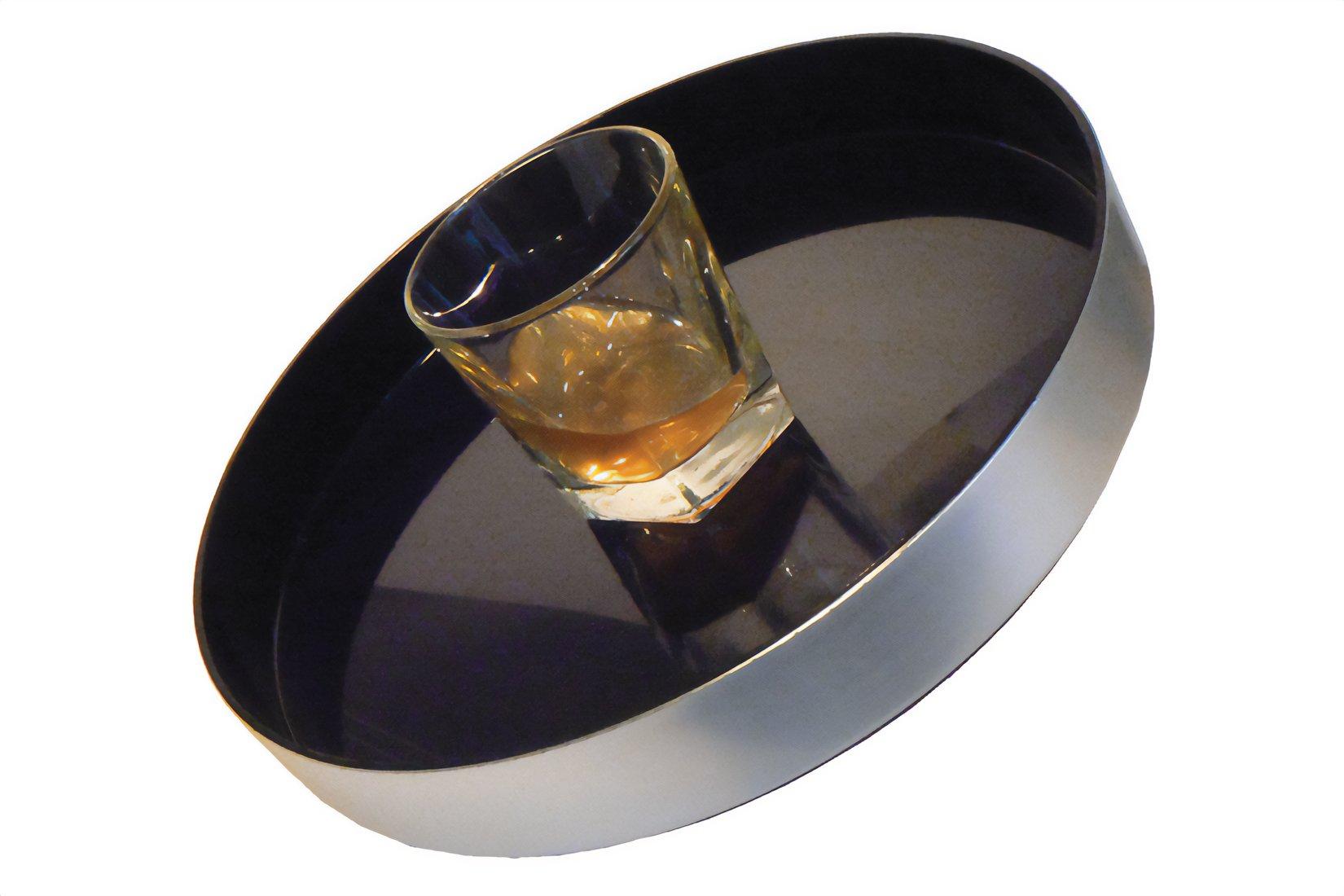 Non Slip Serving Tray Black with Brushed Aluminium Effect