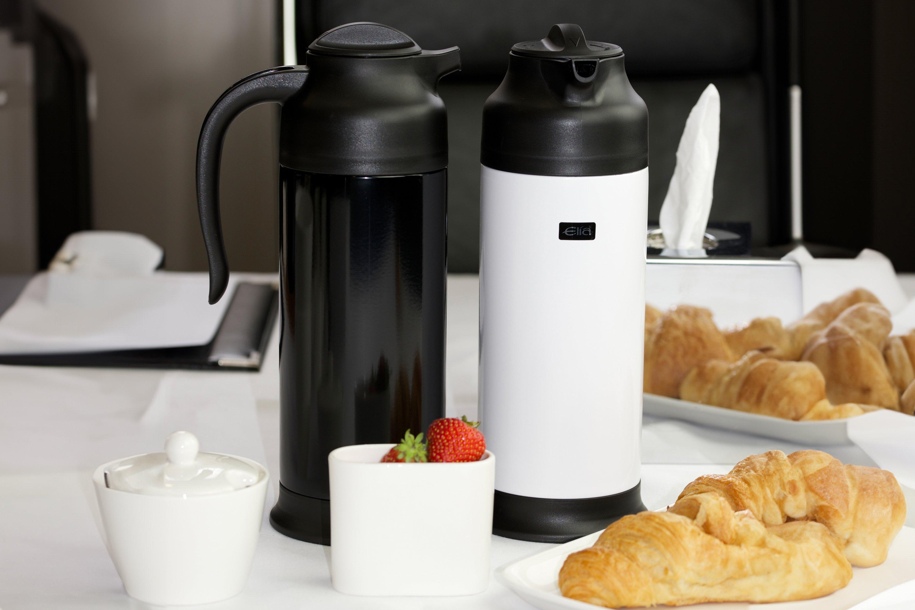The exterior of the jug is made from a white coated tough 18/10 stainless steel and features a shatterproof vacuum liner which ensures your drinks stay hot for 6 to 8 hours at a time. With an easy to use twist top pouring mechanism, this Elia Thermal Beverage Jug is also specially designed to be safe for milk, with no moving parts in the lid mechanism where milk could accumulate.