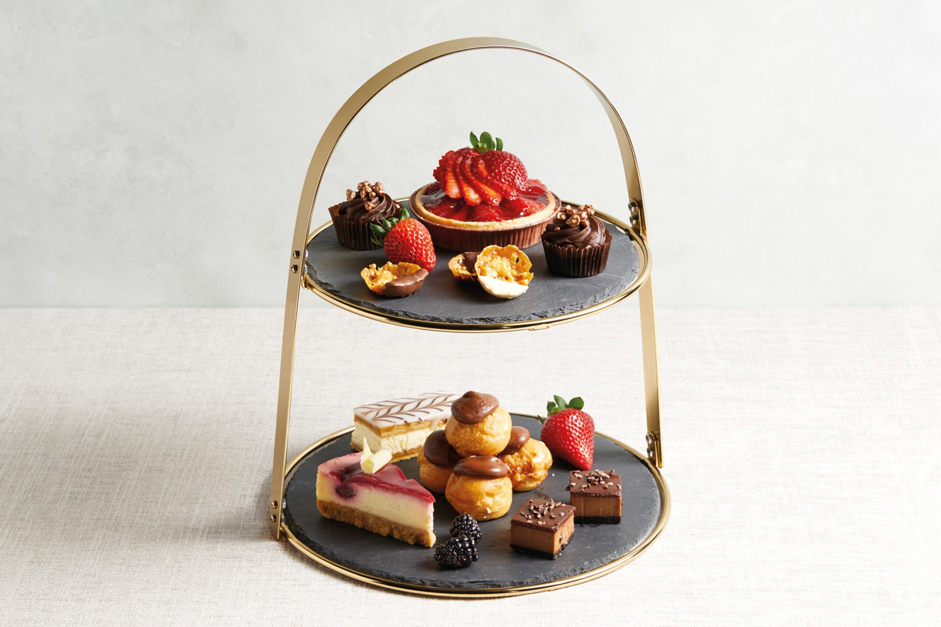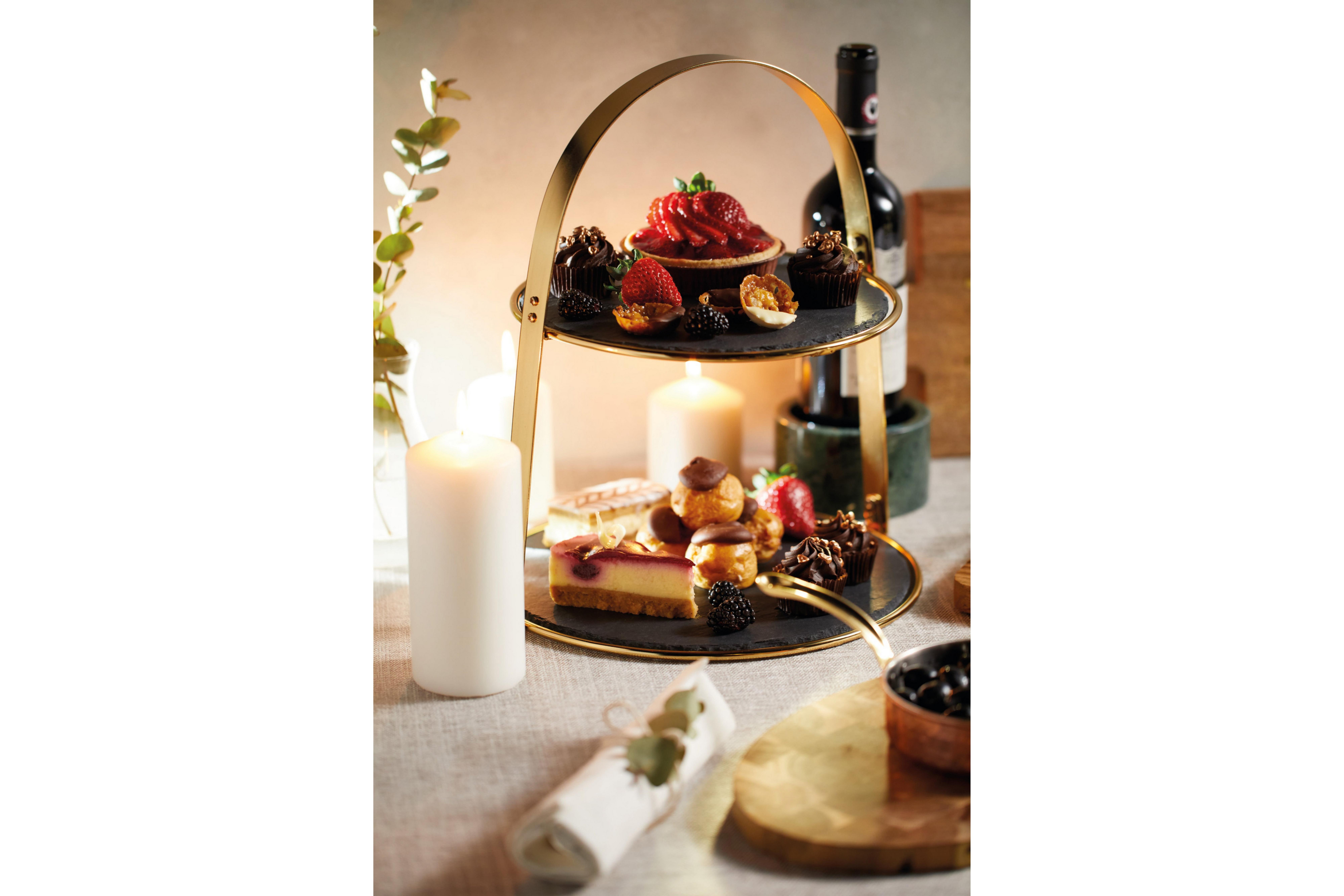 2 Tier Cake Stand with Round Slate Serving Platters 29.5x35cm