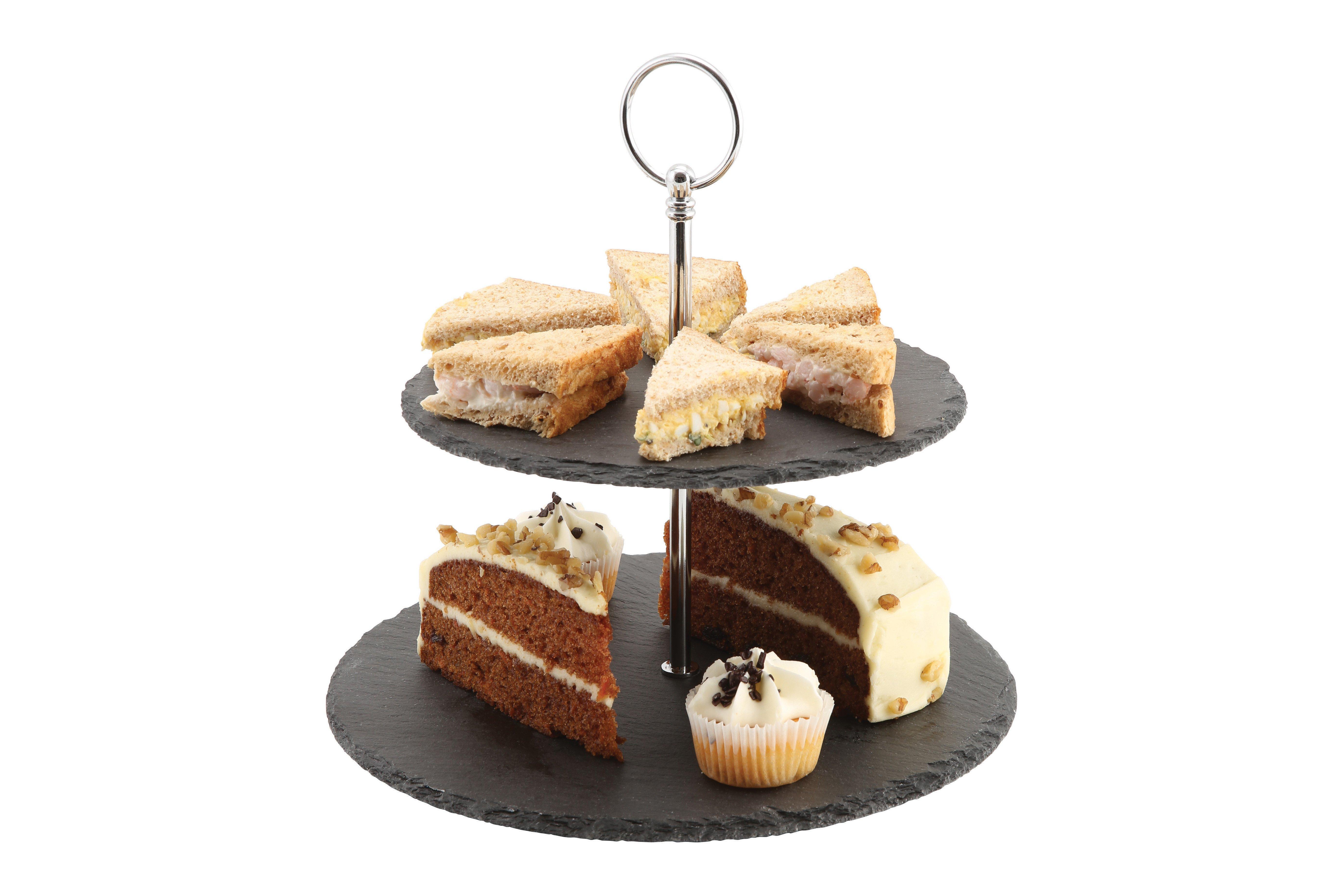 This and 2 Tier Slate Cake Stand is the and perfect solution for hotels, restaurants and caf�s, it creates an elevated presentation for buffet display or afternoon tea.
