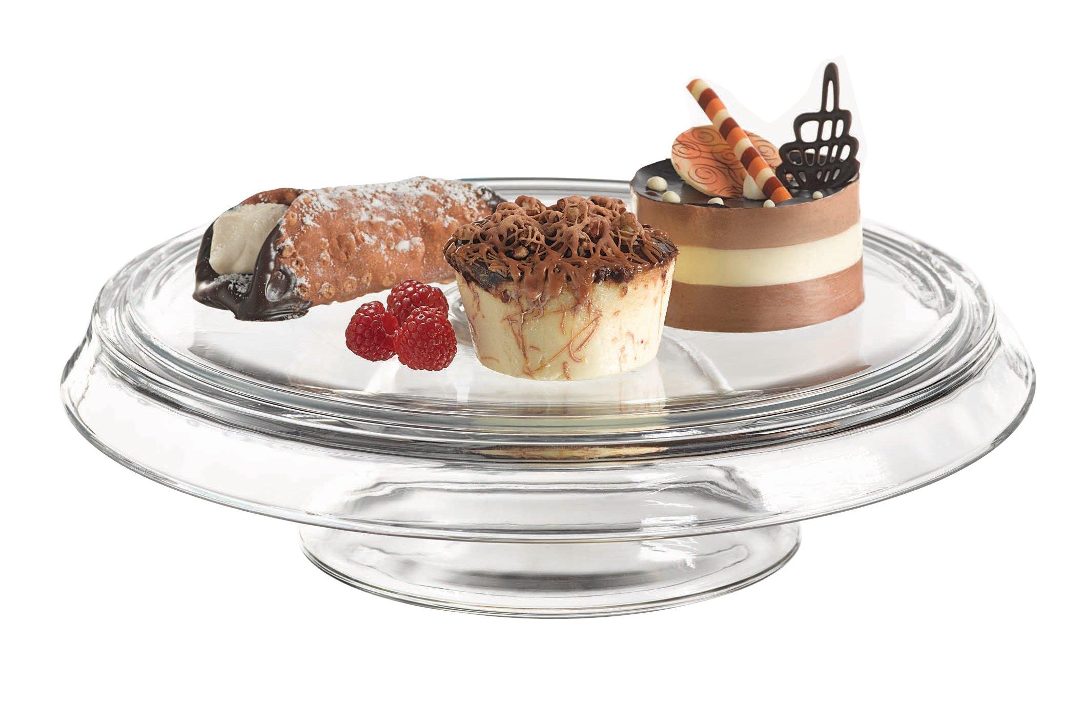Size Stand - 32cm (12.5") dia x 8cm (3") h ; Dome 28.5cm (11") dia x 19cm (7.5") hHas 4 versatile uses, making it idea for parties and general buffet and displays