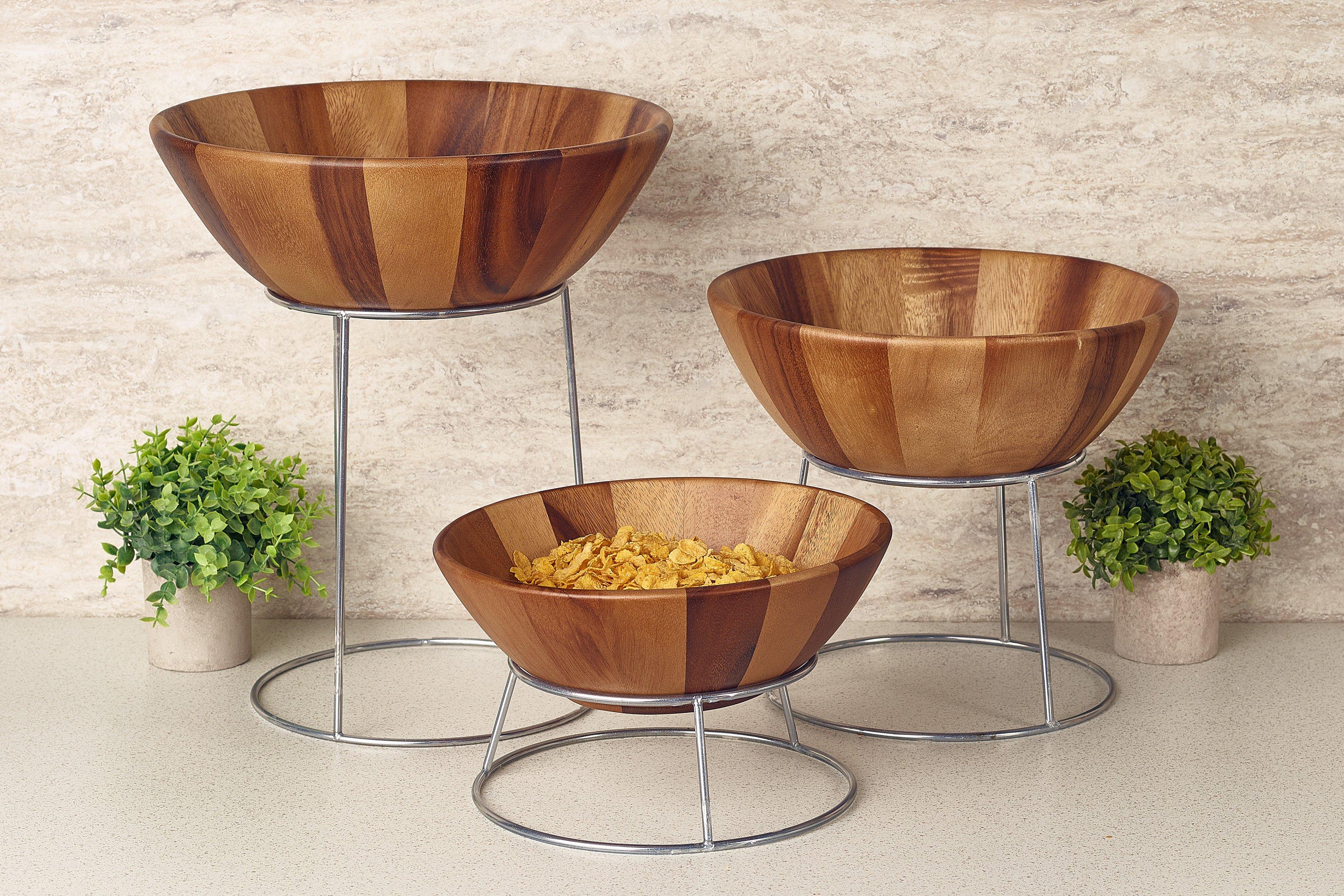 Add warmth, height, and natural beauty to your buffet displays with the GenWare Acacia Wood Buffet Bowls