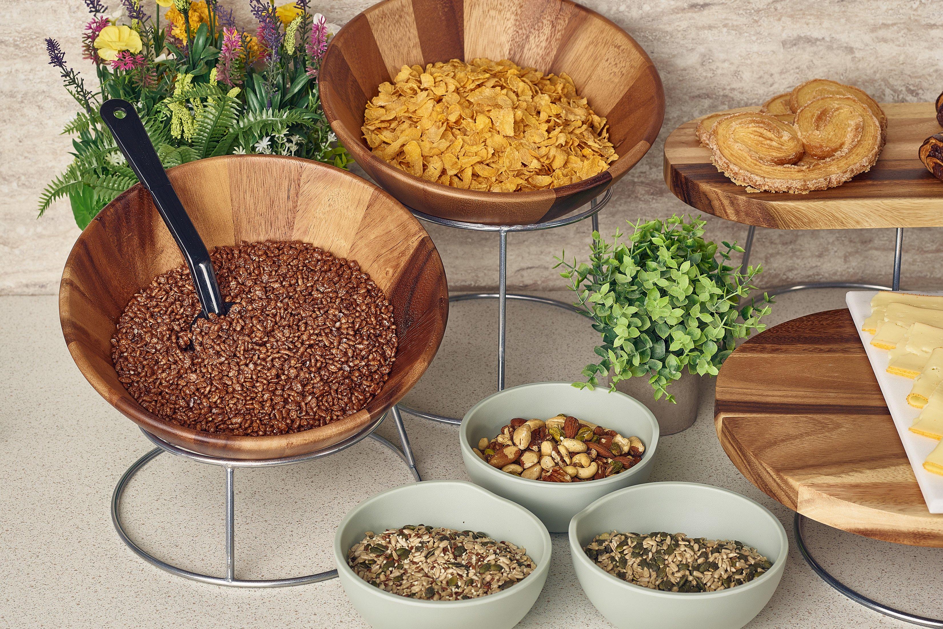 The contemporary design creates a striking visual centrepiece, perfect for showcasing fruits, salads, snacks, or baked goods in hotels, cafes, and catered events.
