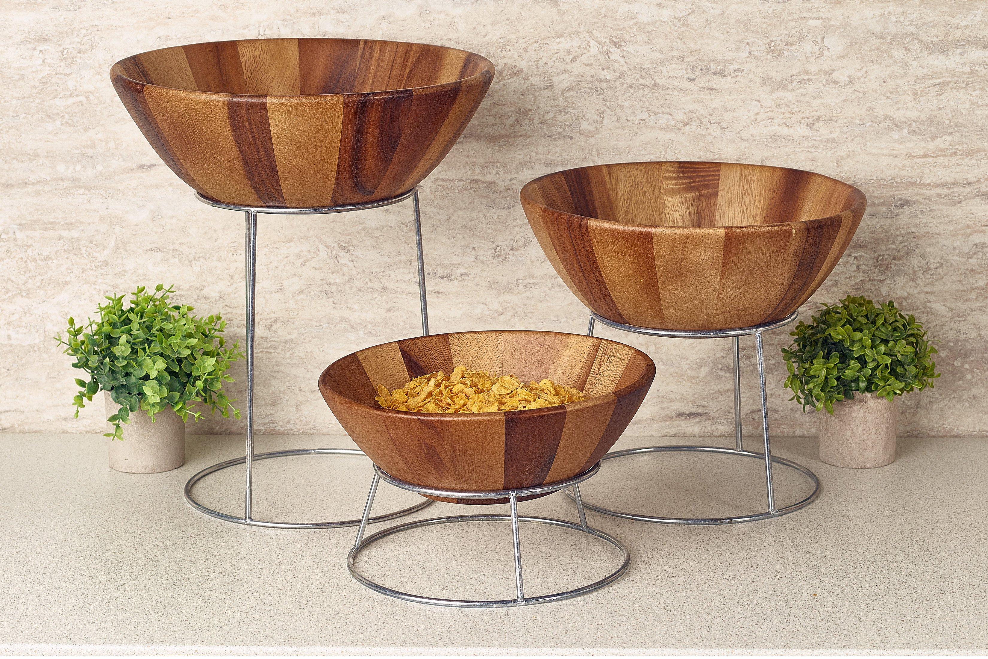 Add warmth, height, and natural beauty to your buffet displays with the GenWare Acacia Wood Buffet Bowls