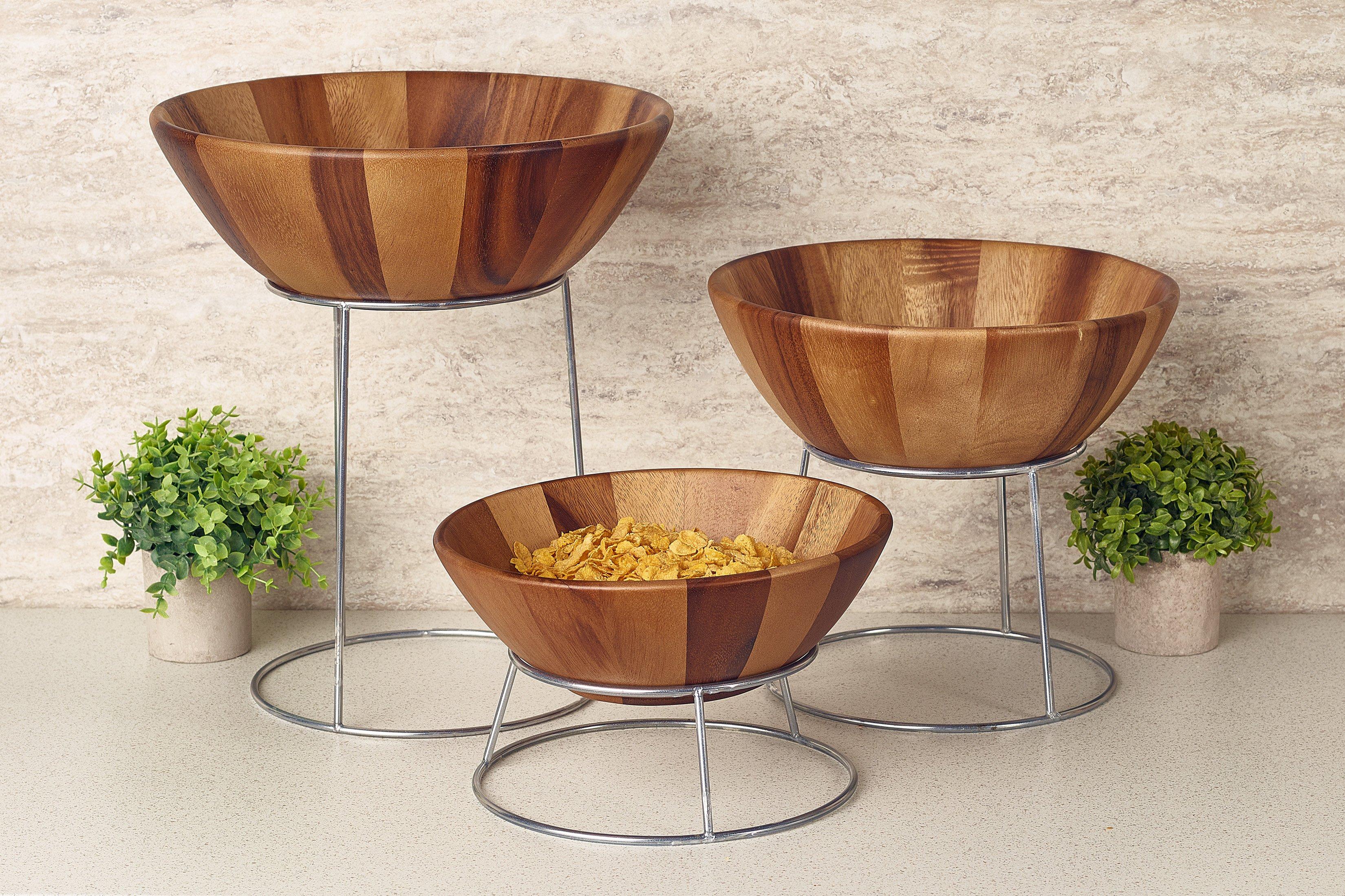 Add warmth, height, and natural beauty to your buffet displays with the GenWare Acacia Wood Buffet Bowls
