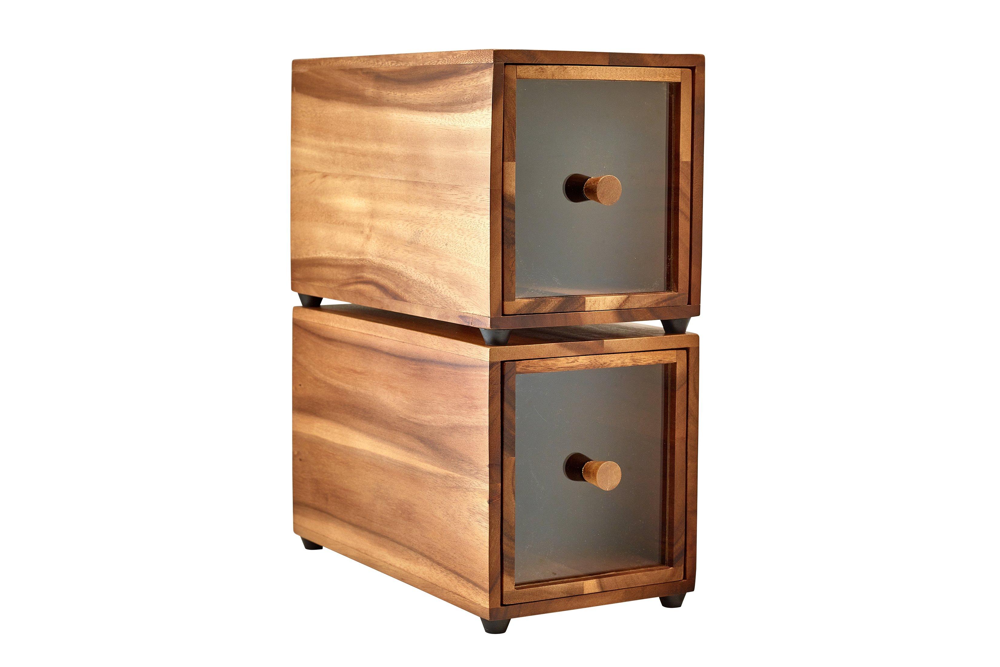 The box is made from acacia wood and features an acrylic window for easy visibility of its contents as well as non-slip rubberised feet.