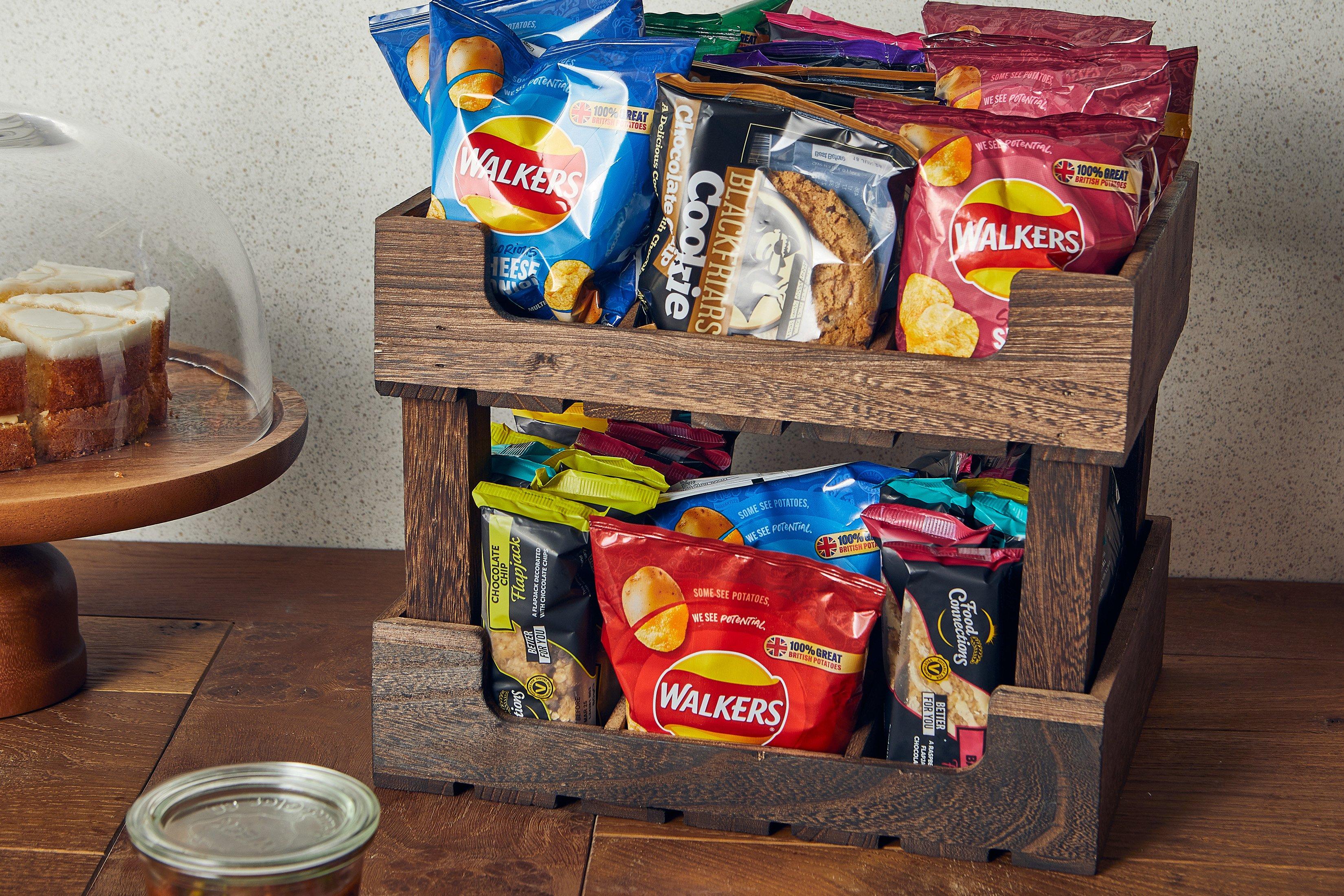 Enhance your buffet or countertop presentation with the Rustic Wooden Display Crate Stand, a perfect blend of practicality and rustic charm.