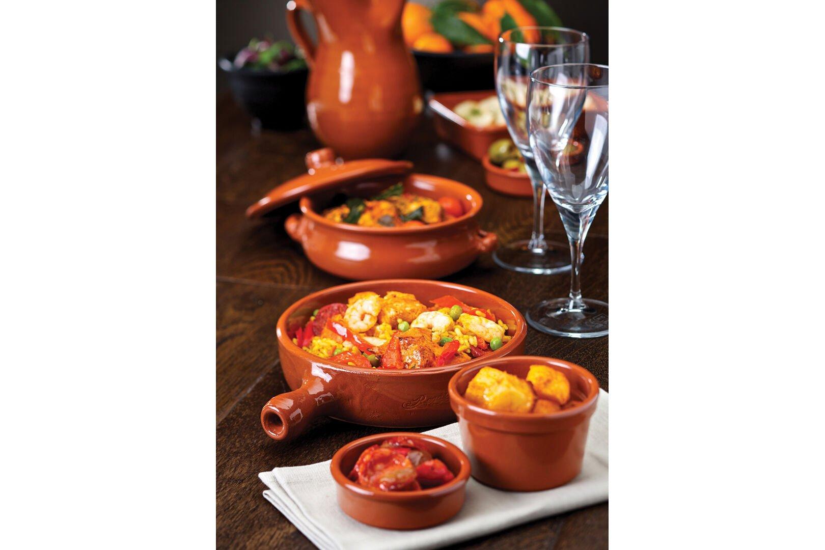 Estrella is a collection of authentic Terracotta, made in Spain. All pieces are suitable for the traditional cooking of tapas and can be served hot straight to the table. Suitable for traditional ovens, microwaves and freezers, Terracotta is naturally fragile and should be handled with care. It is also naturally porous and submerging in water should be avoided.