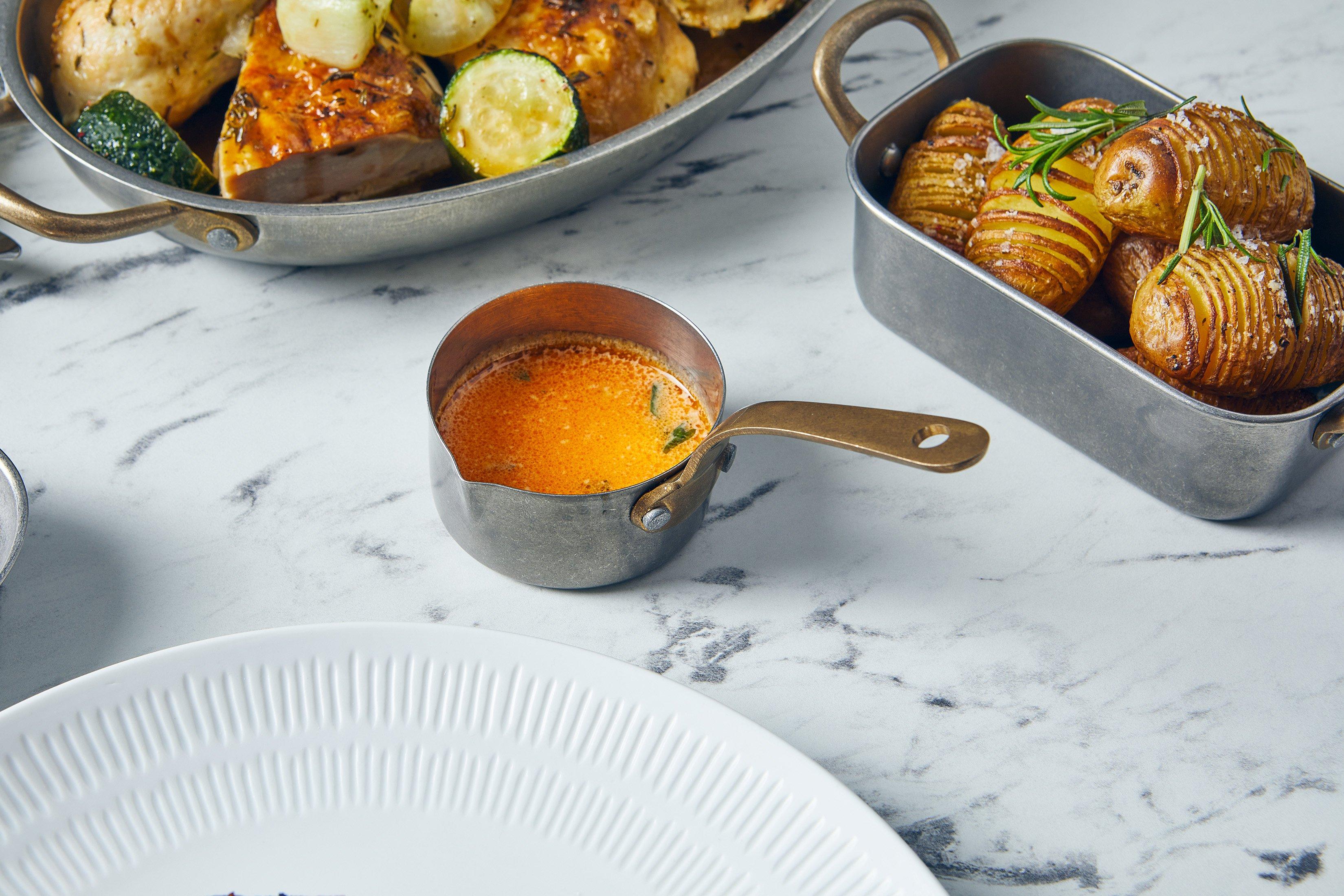 Add a touch of bold, industrial flair to your food presentation with our Vintage Steel Collection.The attractive brass handles add a sophisticated touch, elevating casual dining to a premium experience.Crafted from high-quality stainless steel with a distinctive vintage finish, this collection combines durability and style, offering a unique, industrial finish that enhances any dish.