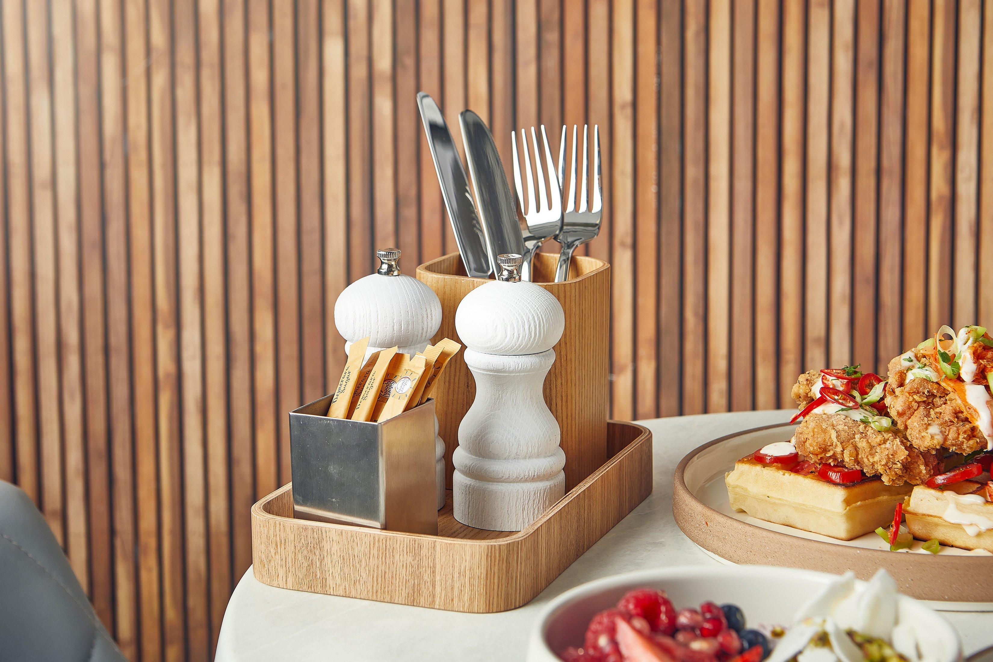 Designed to keep sugar and condiment sachets organised in style, this elegant accessory is perfect for cafes, restaurants, and luxury hospitality settings.