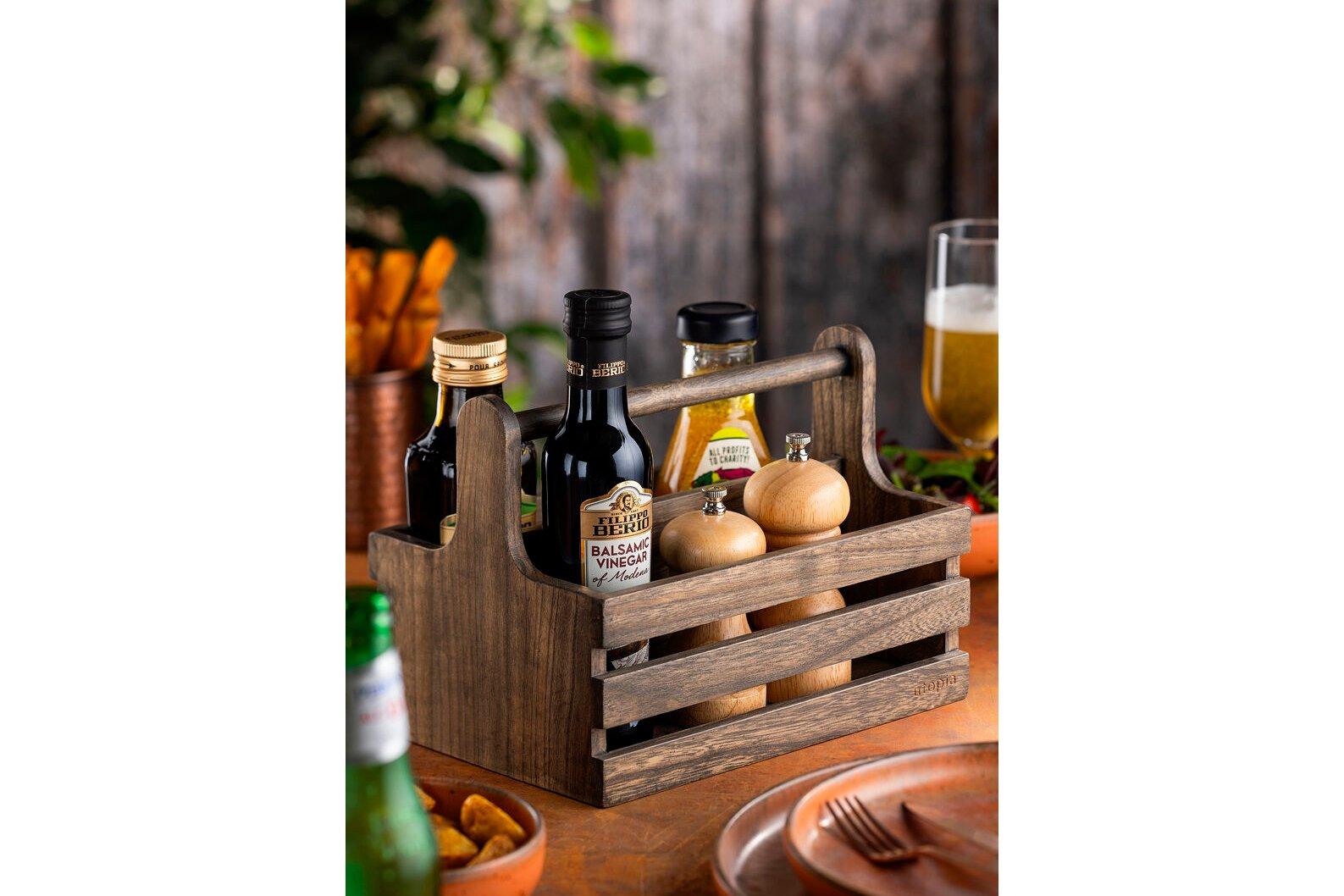 These Rustic Wood Table Caddies are a great addition to the well-dressed table. Created from sustainable source they are an ideal way to present a range of tabletop items including condiments, cutlery and menus. Perfect when a more casual look is required.