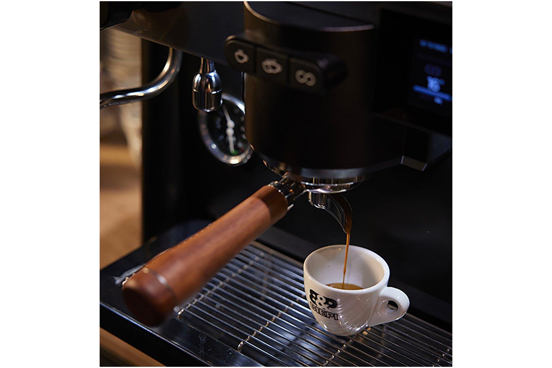 - Optimum ergonomics with angled portafilter grips.