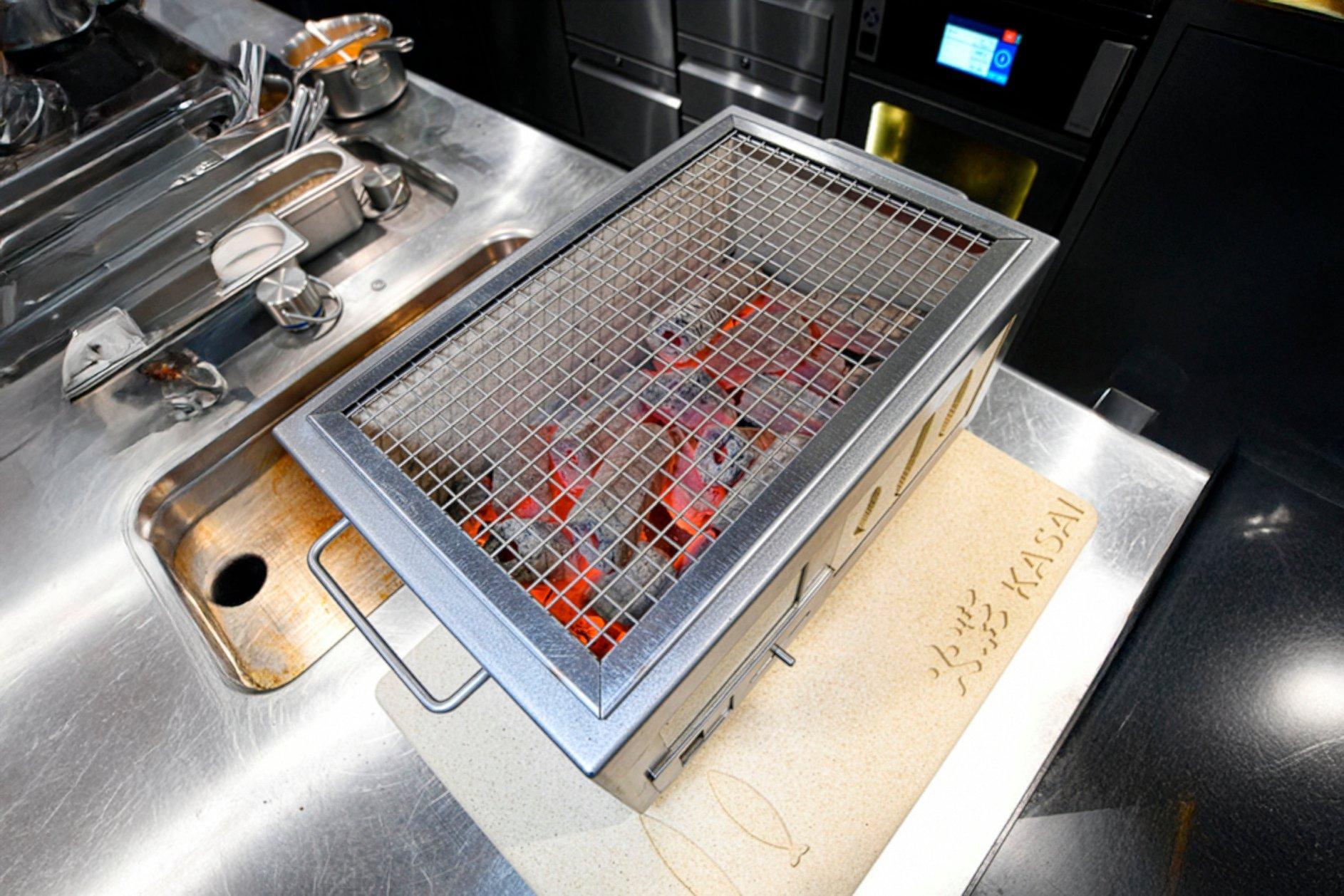The nature of this style of cooking is based on the coals becoming extremely hot. Using charcoal instead of wood offers much greater heat due to a much higher energy content. With this in mind, we have designed the Kasai Konro Grill Heat Mat to protect your surface/worktop.