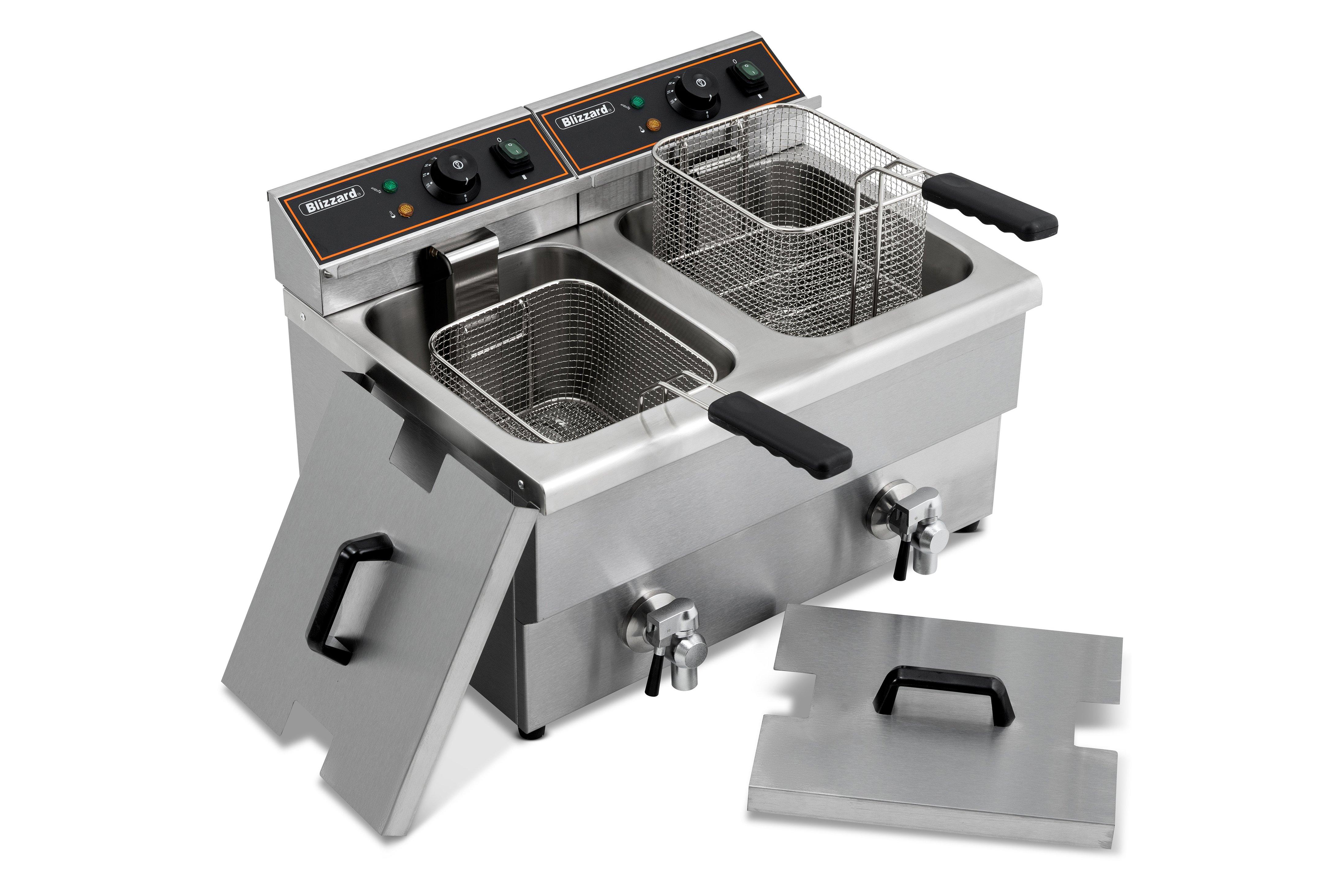 The Blizzard BF8+8 Double Counter Top Electric Fryer is ideal for sites looking for a Compact Fryer with a 2 x 13 amp connection. This Fryer is perfect for portions of chip and starters/side orders.