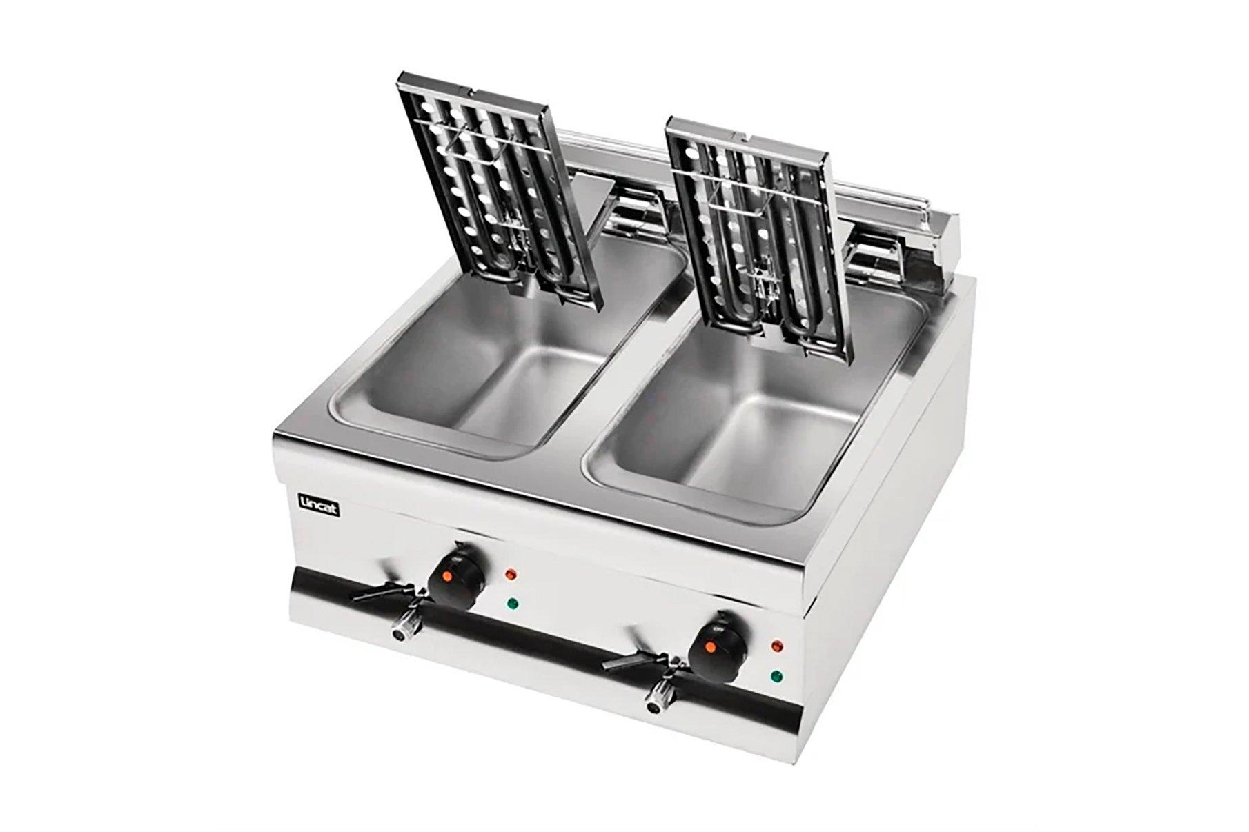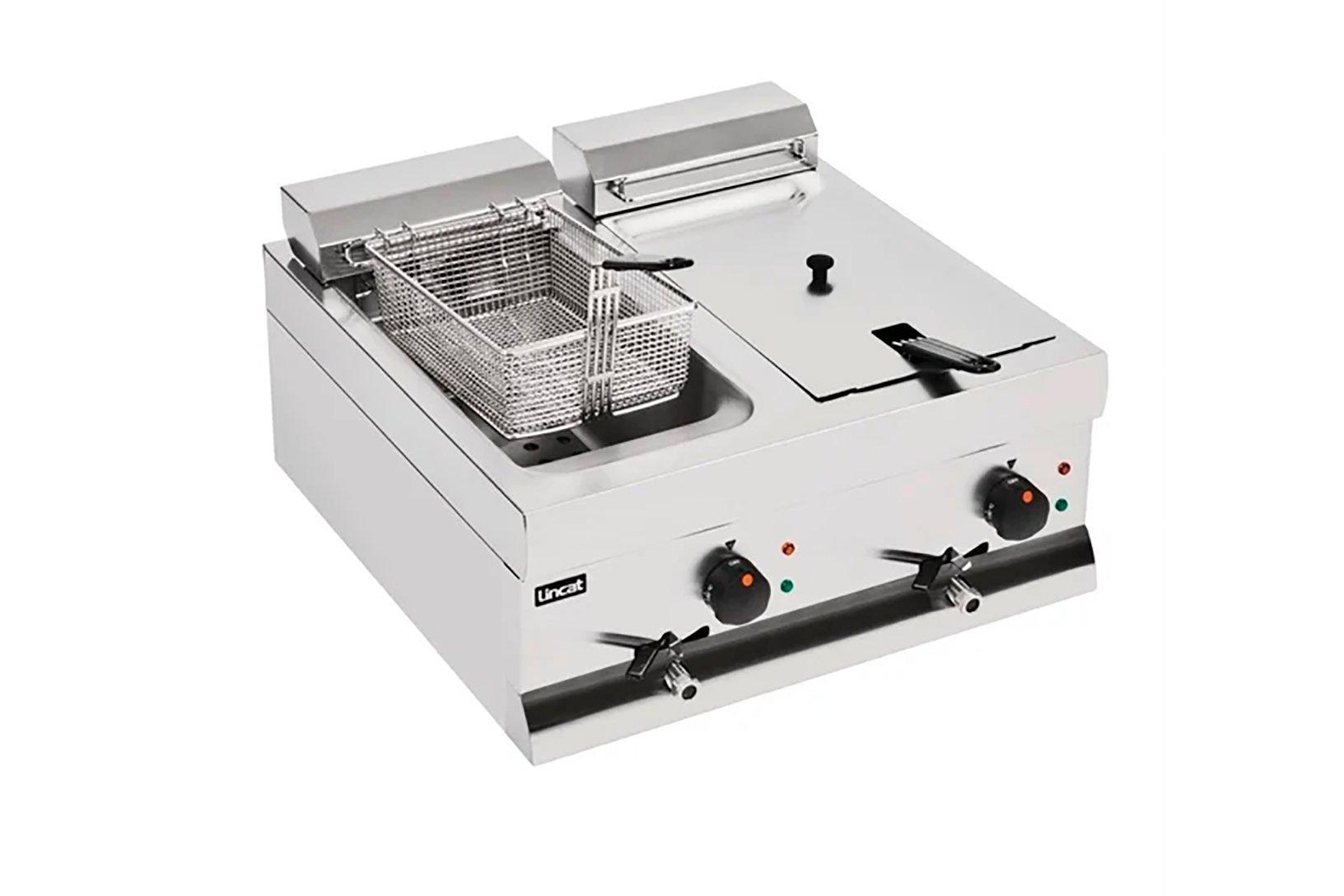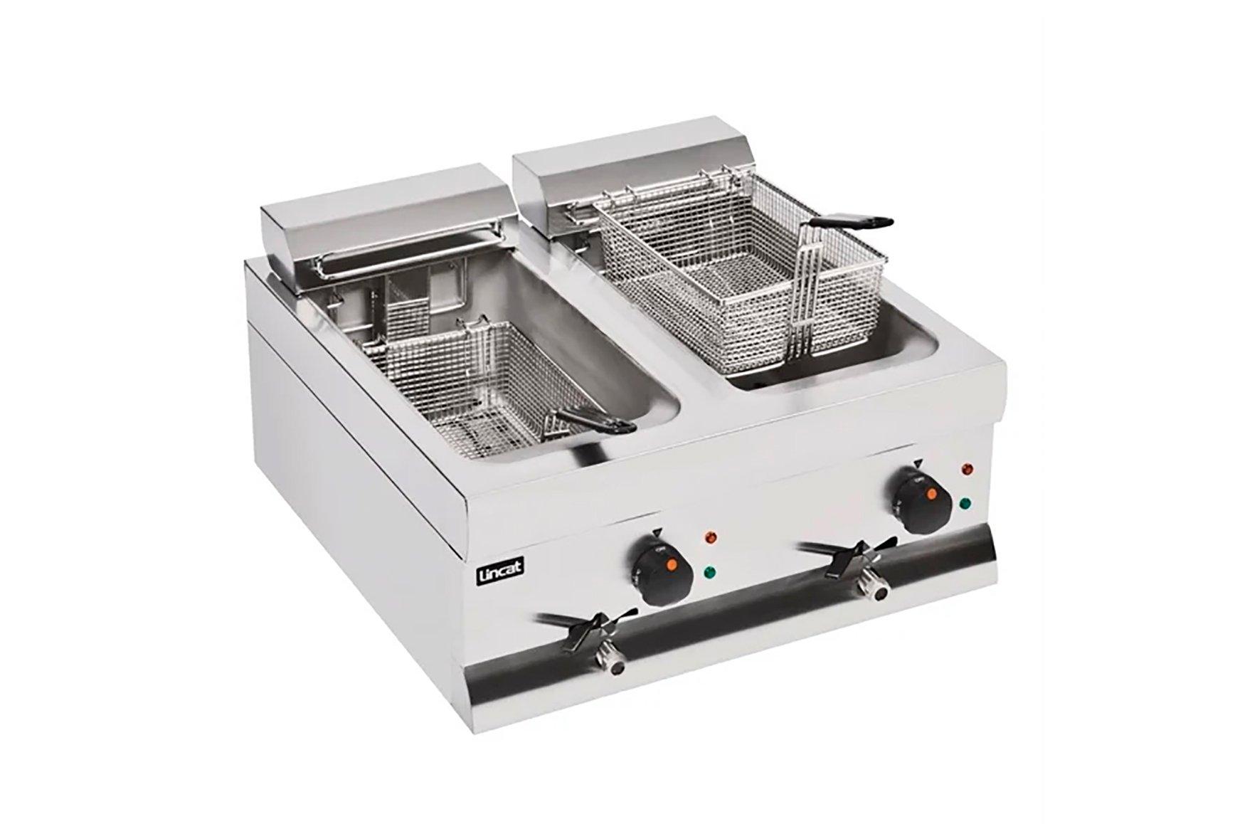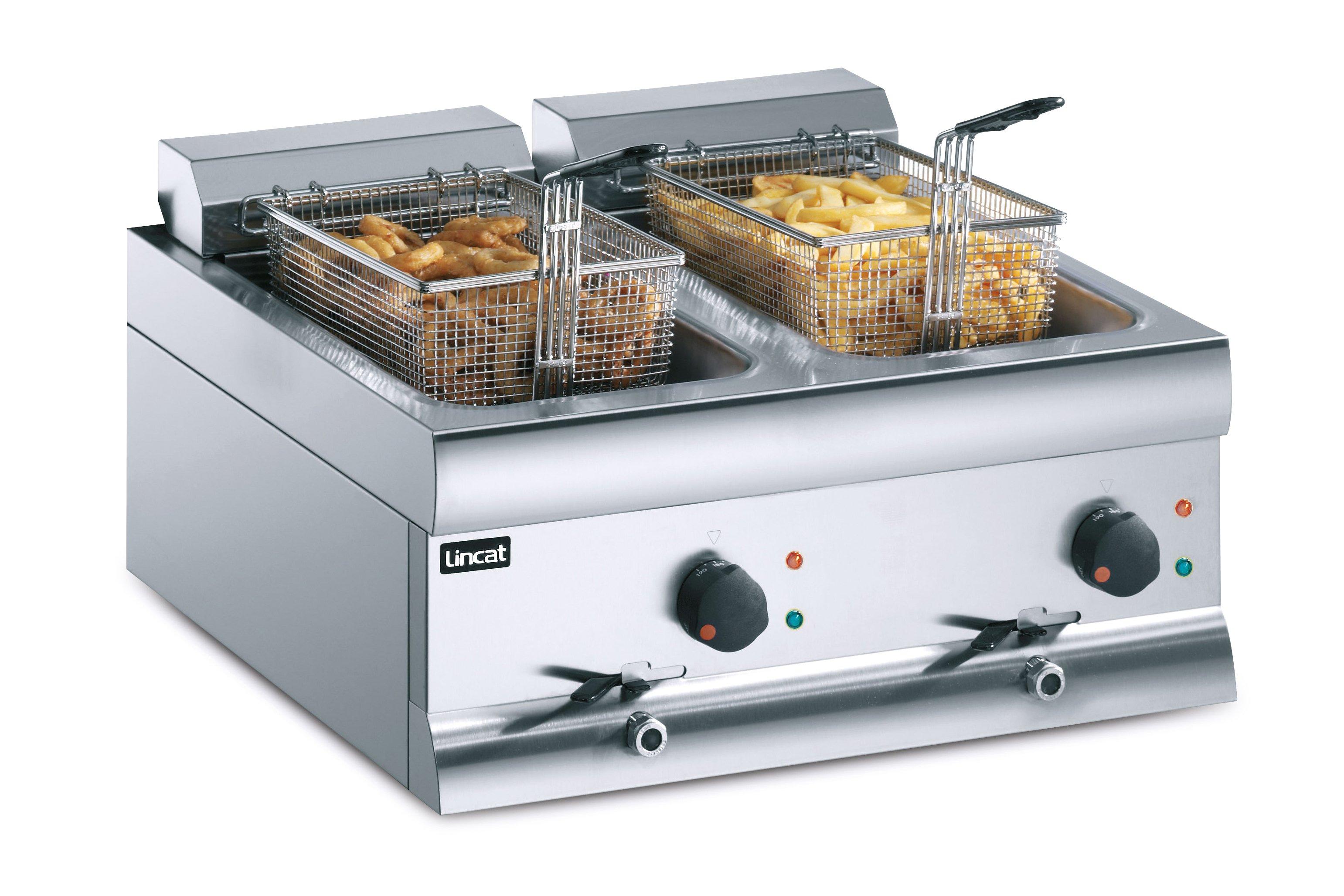 This Lincat Silverlink 600 DF66 Fryer has been designed to fit on your counter top. The front mounted controls are simple to operate creating a safe working practice. The thermostatic control has a fail-safe top temperature cut out which maintains an accurate oil temperature and ensures safe operation. This fryer has a 2x9 litre tank capacity with a two basket fryers per a tank.