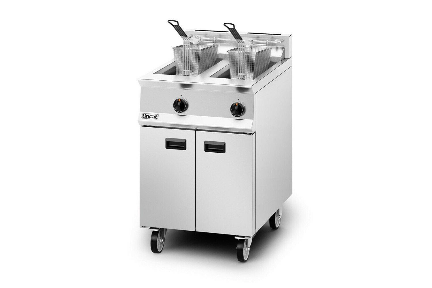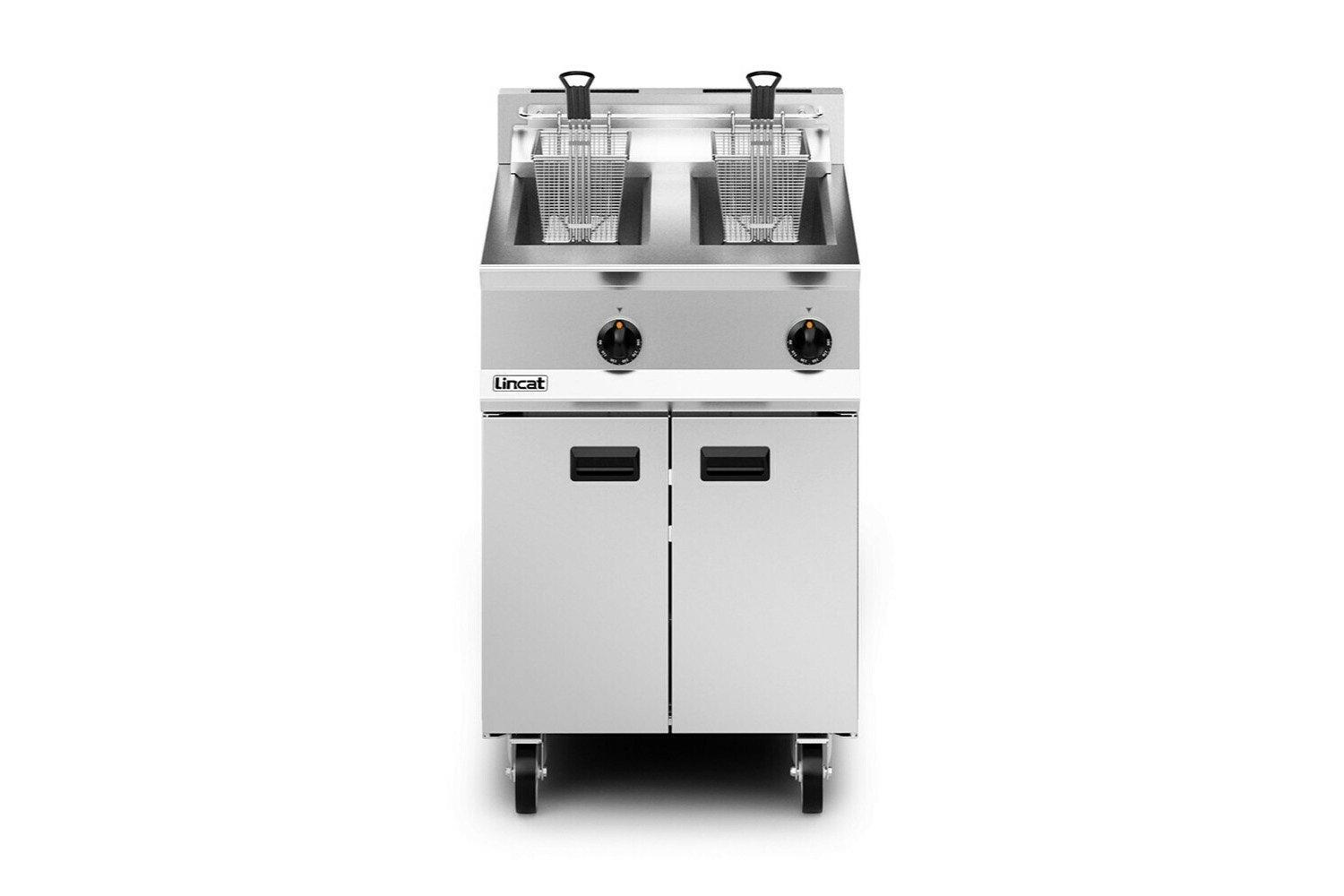 The Lincat OG8111/N Opus 800 Gas Fryer has two independently controlled 14 litre tanks for greater versatility and is supplied with front and rear castors.