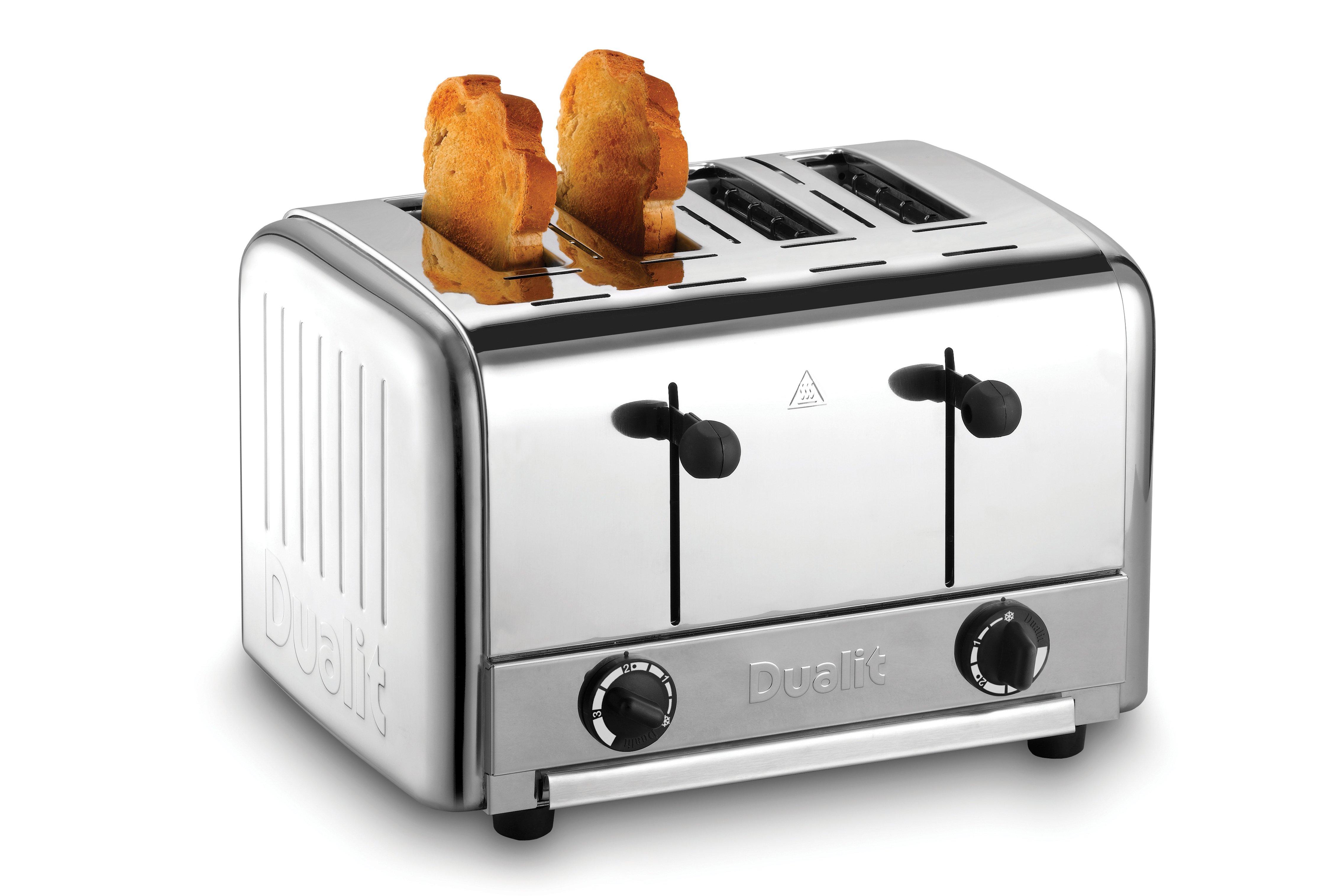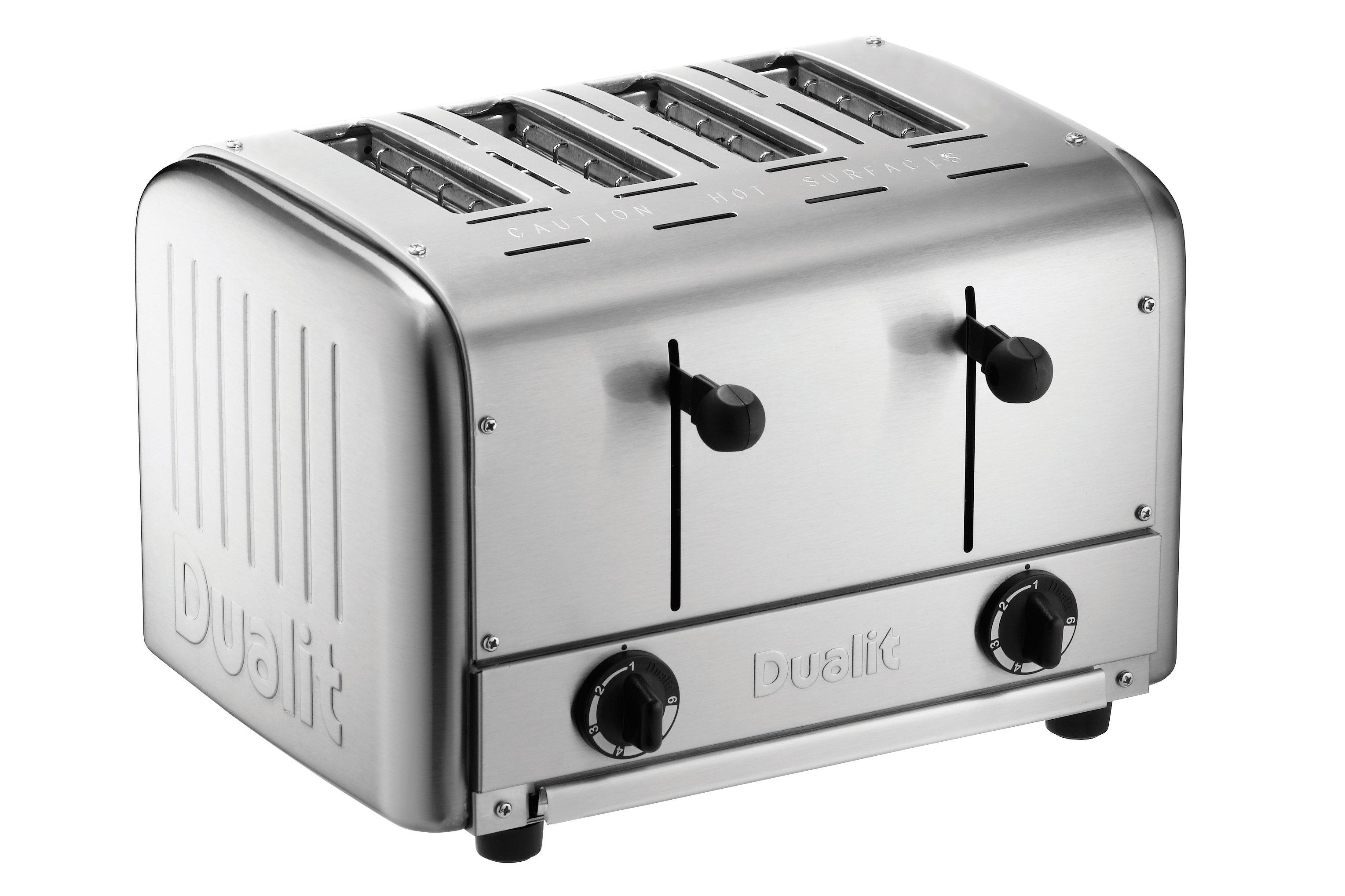 This Dualit Commercial Four Slot Pop Up Toaster is part of the Brakes Contact Grill and Toaster range. It features a browning control for specific types of bread; the toaster then auto-adjusts the time to ensure consistent browning from first to last slice.