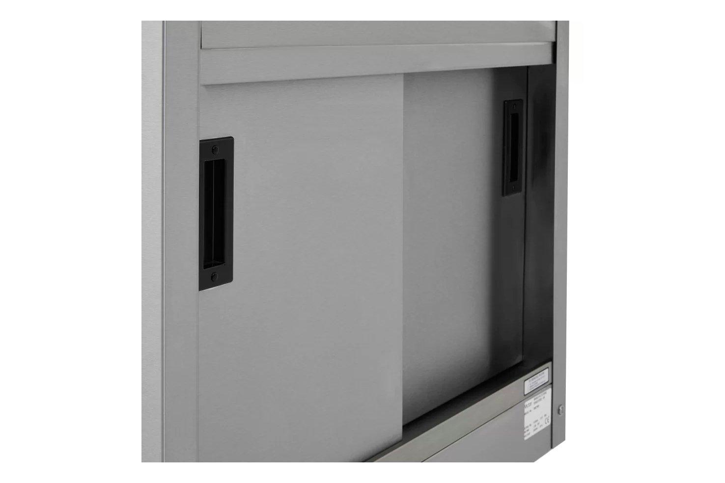 The Bain Marie and Hot Cupboard are thermostatically controlled with each heat element being independently adjustable, for added convenience and versatility. The sliding door to the hot cupboard minimises the risk of trapping dirt. The Hot Cupboard has the capacity to hold up to 60 plated meals or 420 empty 10" plates. The interior also features 2 removable shelves and supports for optimum space.The digital display temperature is easy to read.
