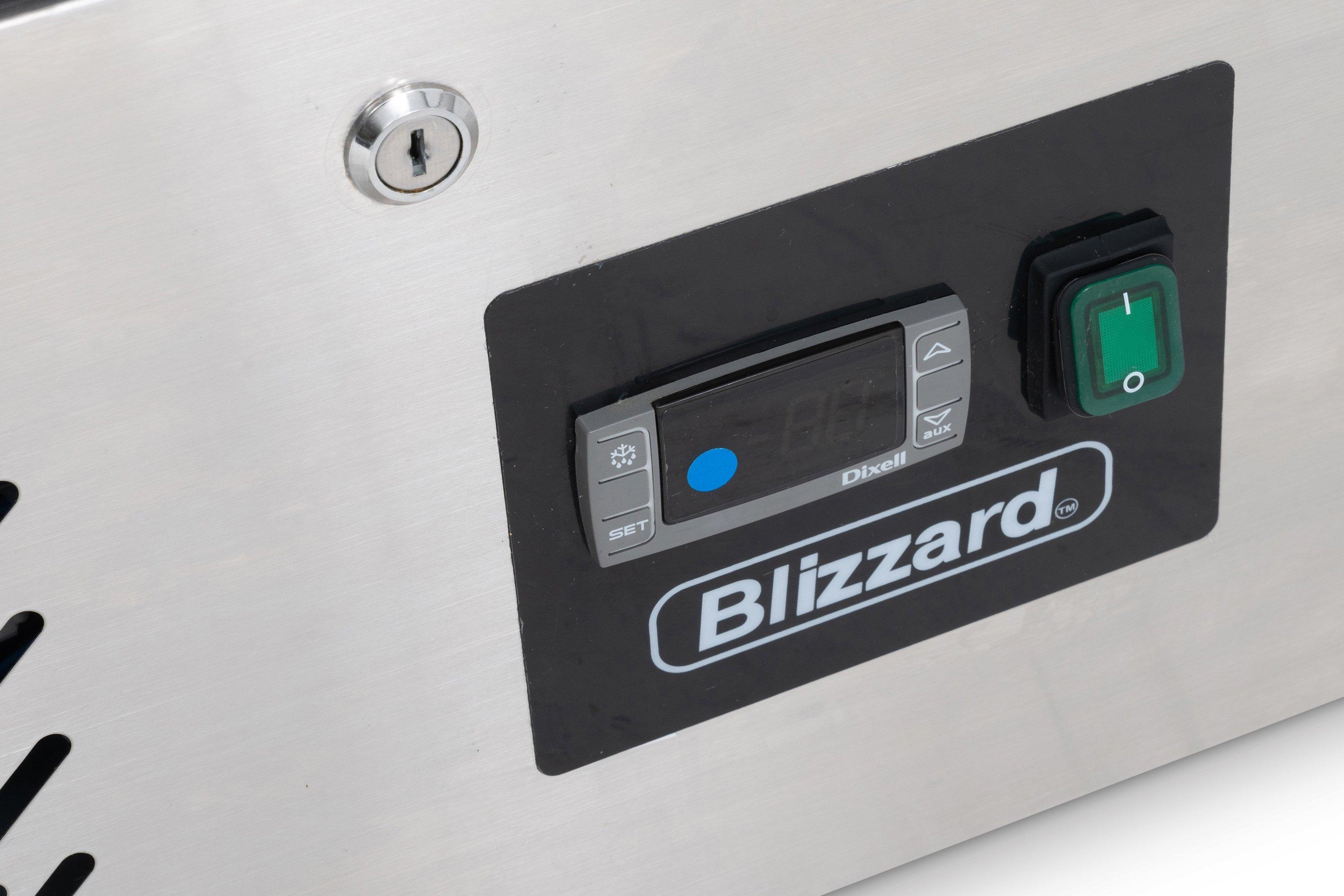 This Blizzard Gastronorm Counter has a temperature range of +2 to +8C and features an automatic defrost system. It also has an ambient temperature of 32C. The interior features rounded corners for easy cleaning. The gaskets are also replaceable.