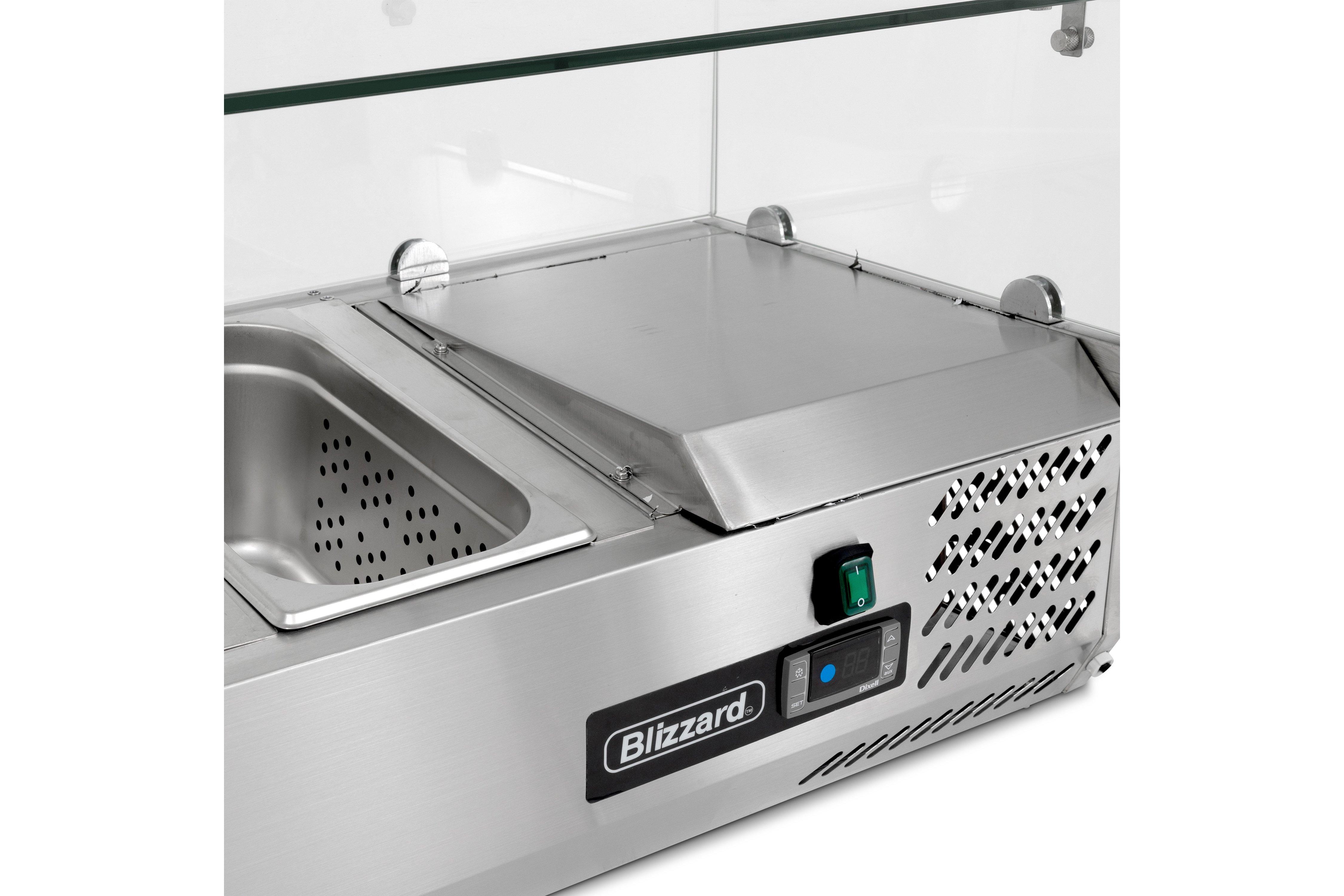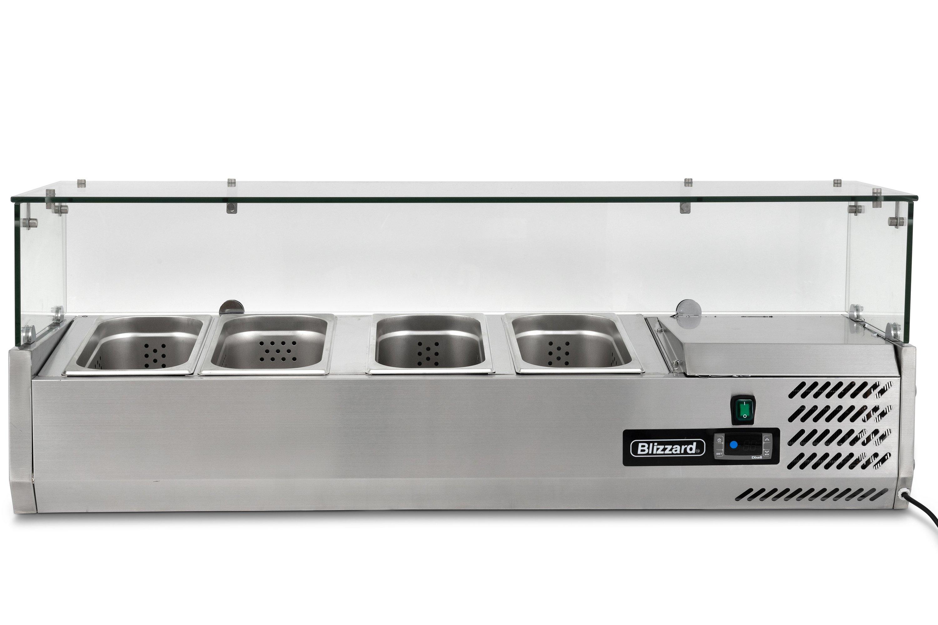 Blizzard TOP1200CR Refrigerated Top has the capacity to hold 4 x 1/3 gastronorm containers up to 150mm deep which are not supplied as standard but are available separately here at Brakes.