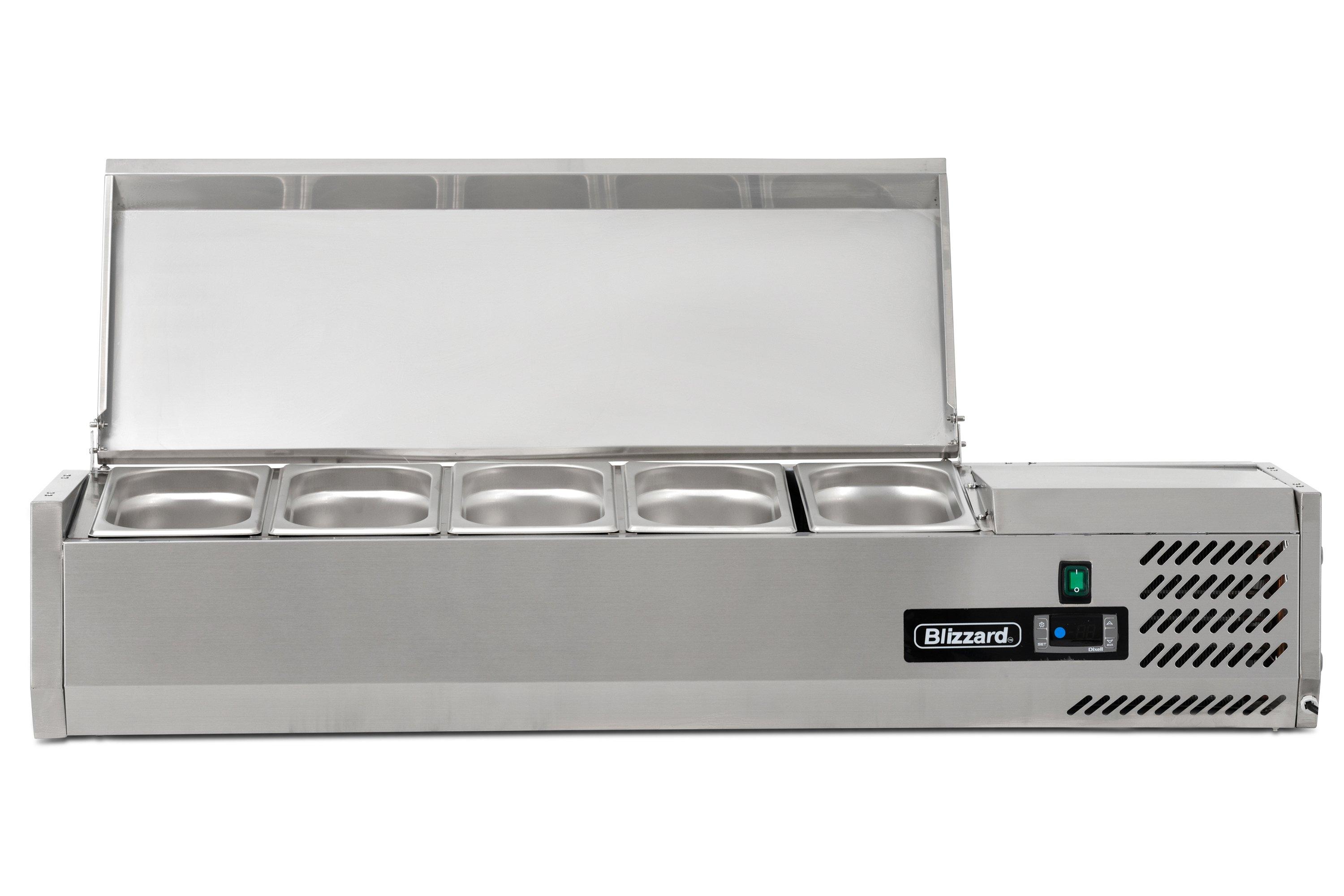Blizzard TOP1200EN Refrigerated Top has the capacity to hold 4 x 1/3 gastronorm containers up to 150mm deep which are not supplied as standard but are available separately here at Brakes.