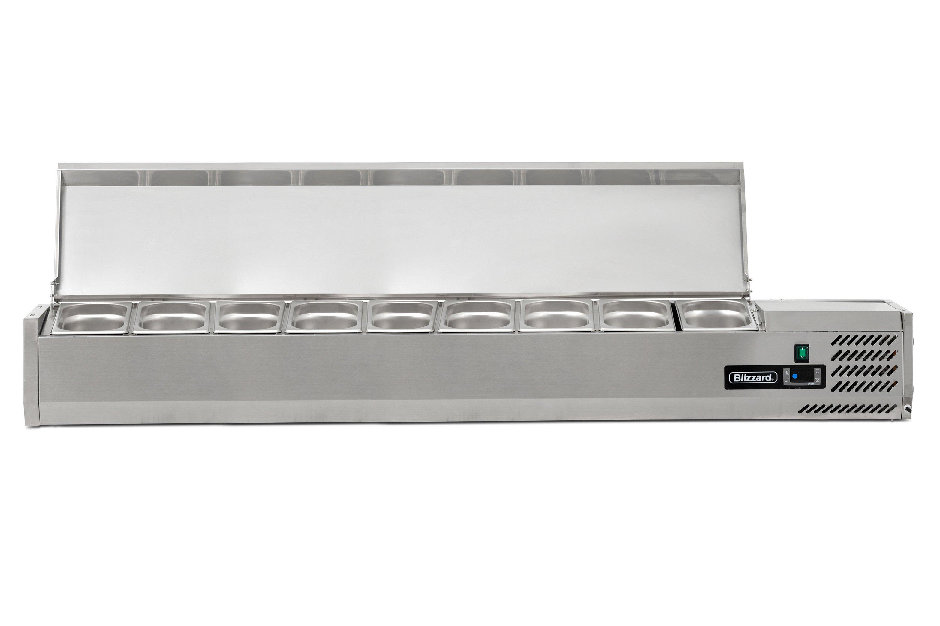 Blizzard TOP2000EN Refrigerated Top has the capacity to hold 6 x 1/3 and 4 x 1/4 gastronorm containers up to 150mm deep which are not supplied as standard but are available separately here at Brakes.