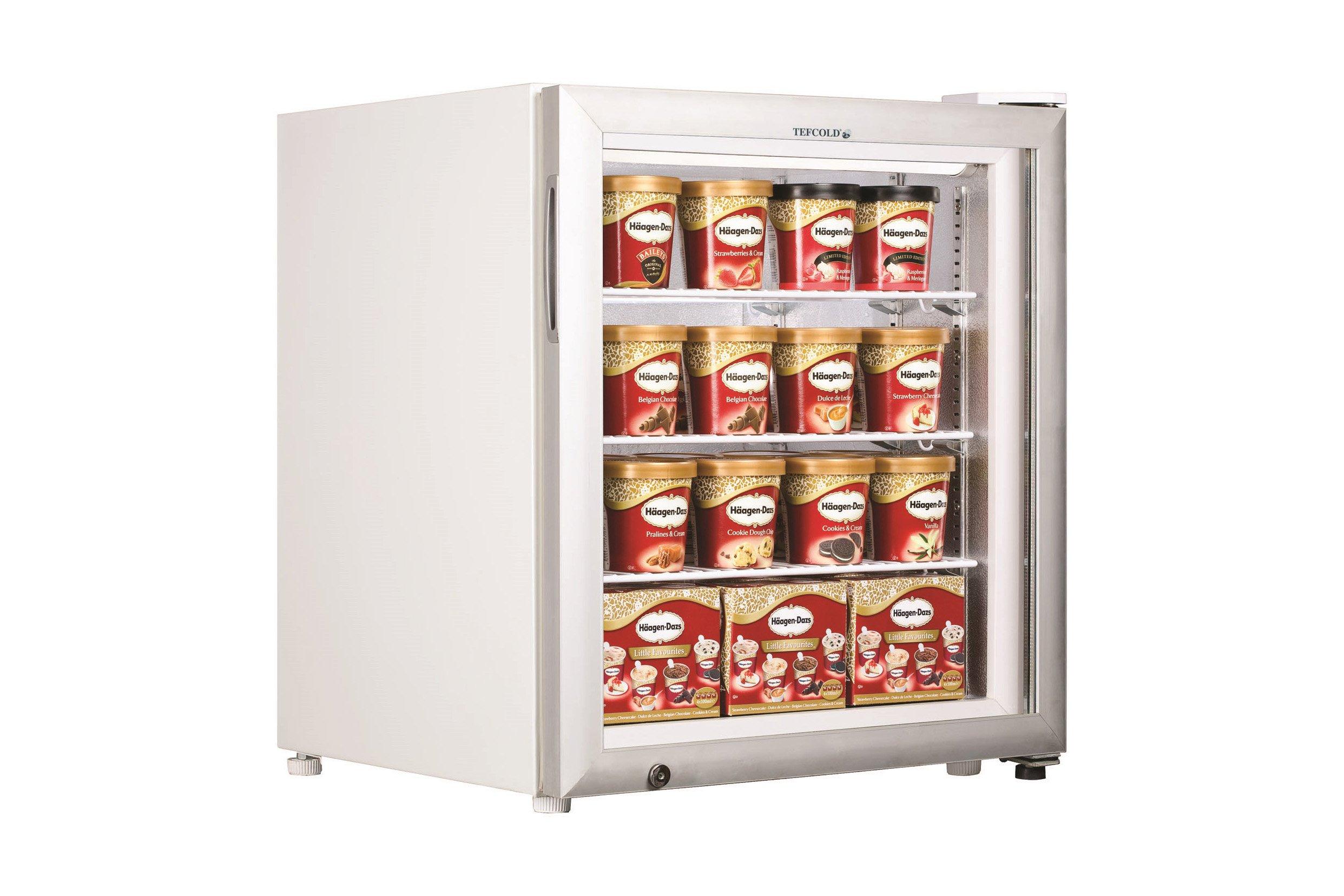 This display freezer features an interior light so that the products are visible at all times. The base and 2 adjustable shelves create ample storage within. The door gaskets are replaceable for easy maintenance. It also has a 90 litre capacity. The interior is made from aluminium. This display freezer by Tefcold is ideal for displaying ice creams and many other frozen delights.