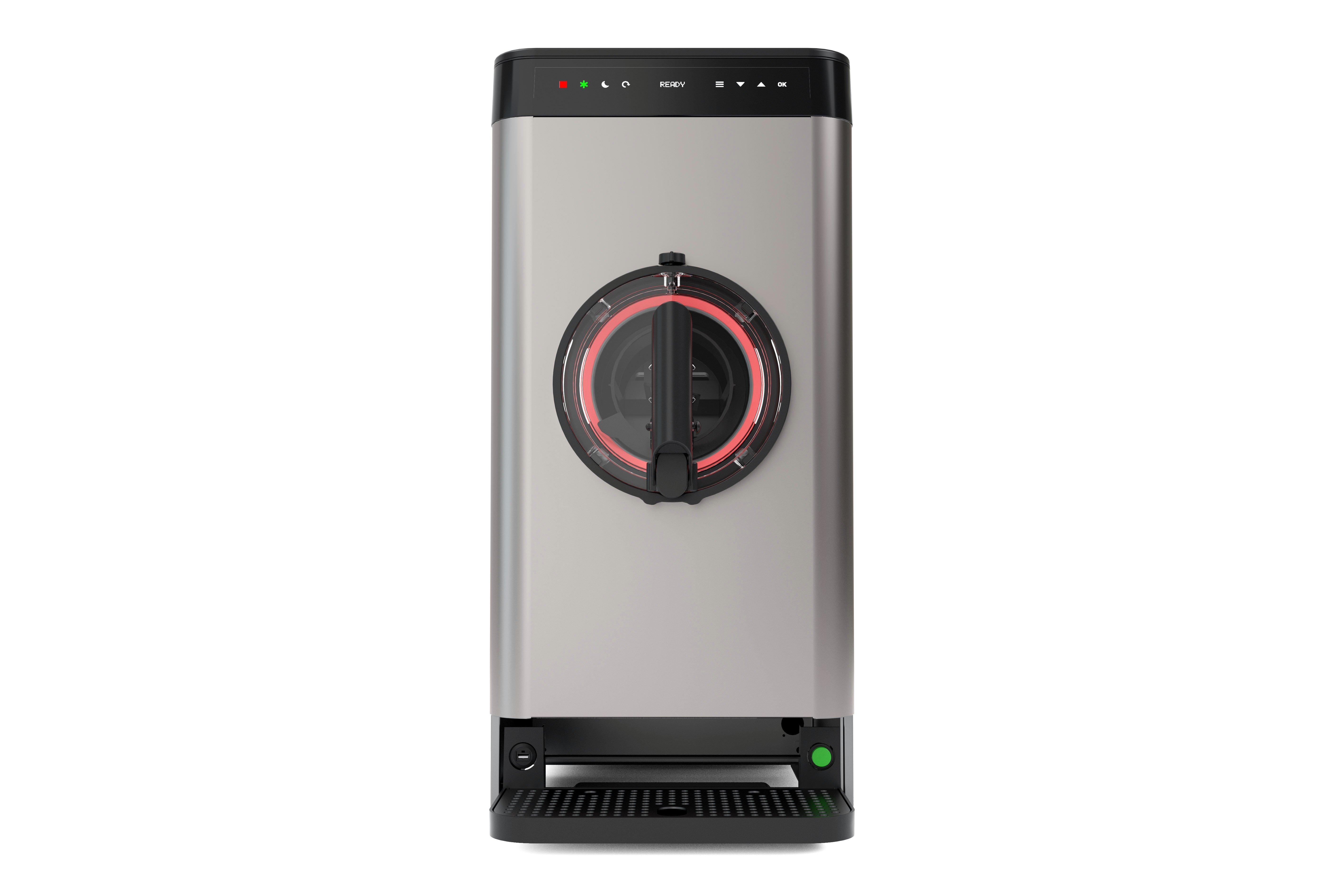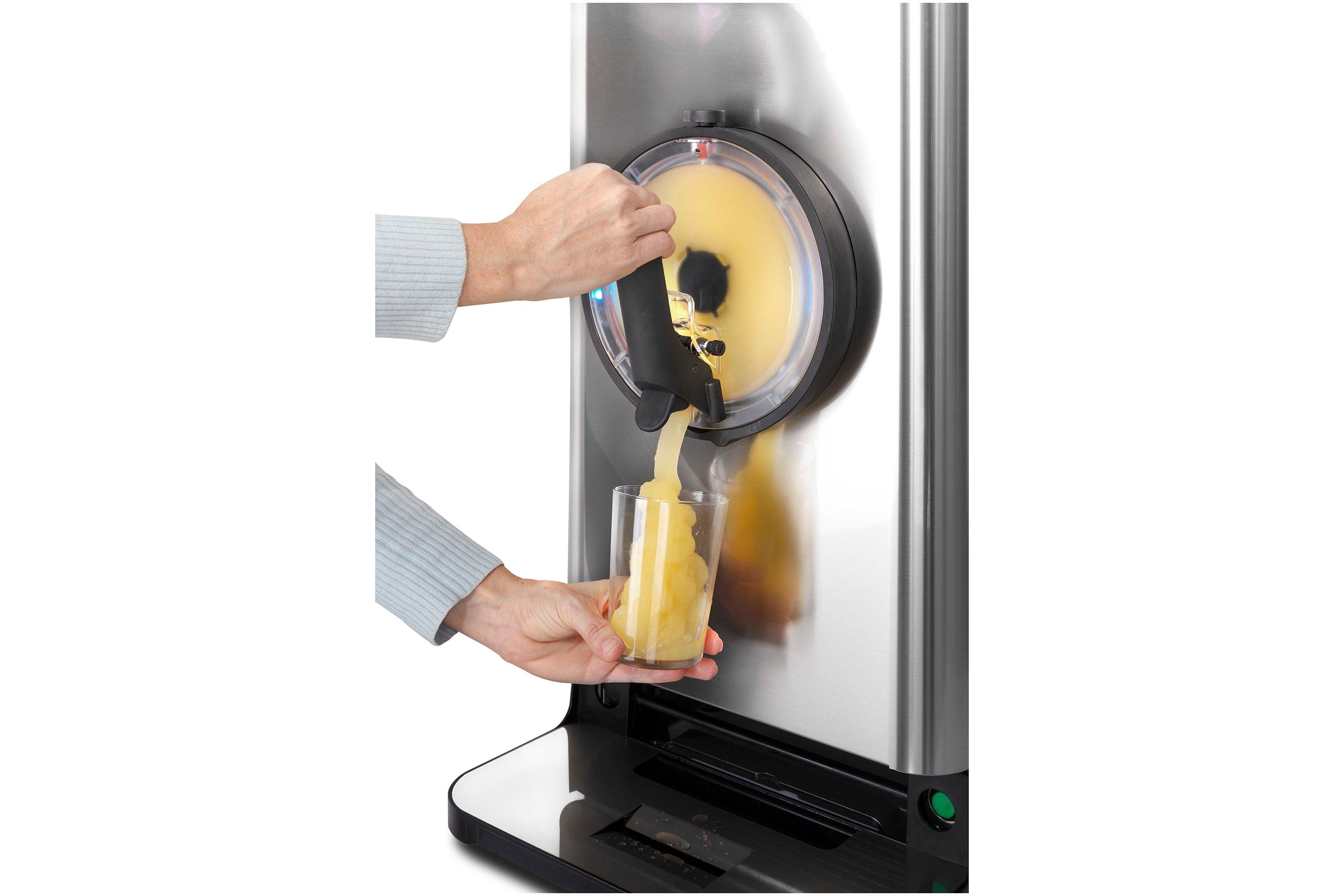 Featuring customisable colour LEDs, stunning style, slim-line design, and vertical air-flow technology. In just a few steps, the automatic operation can produce 100 portions of frozen cocktails, slush, granita, frappe, smoothies and premium thick shakes in just 20 minutes!