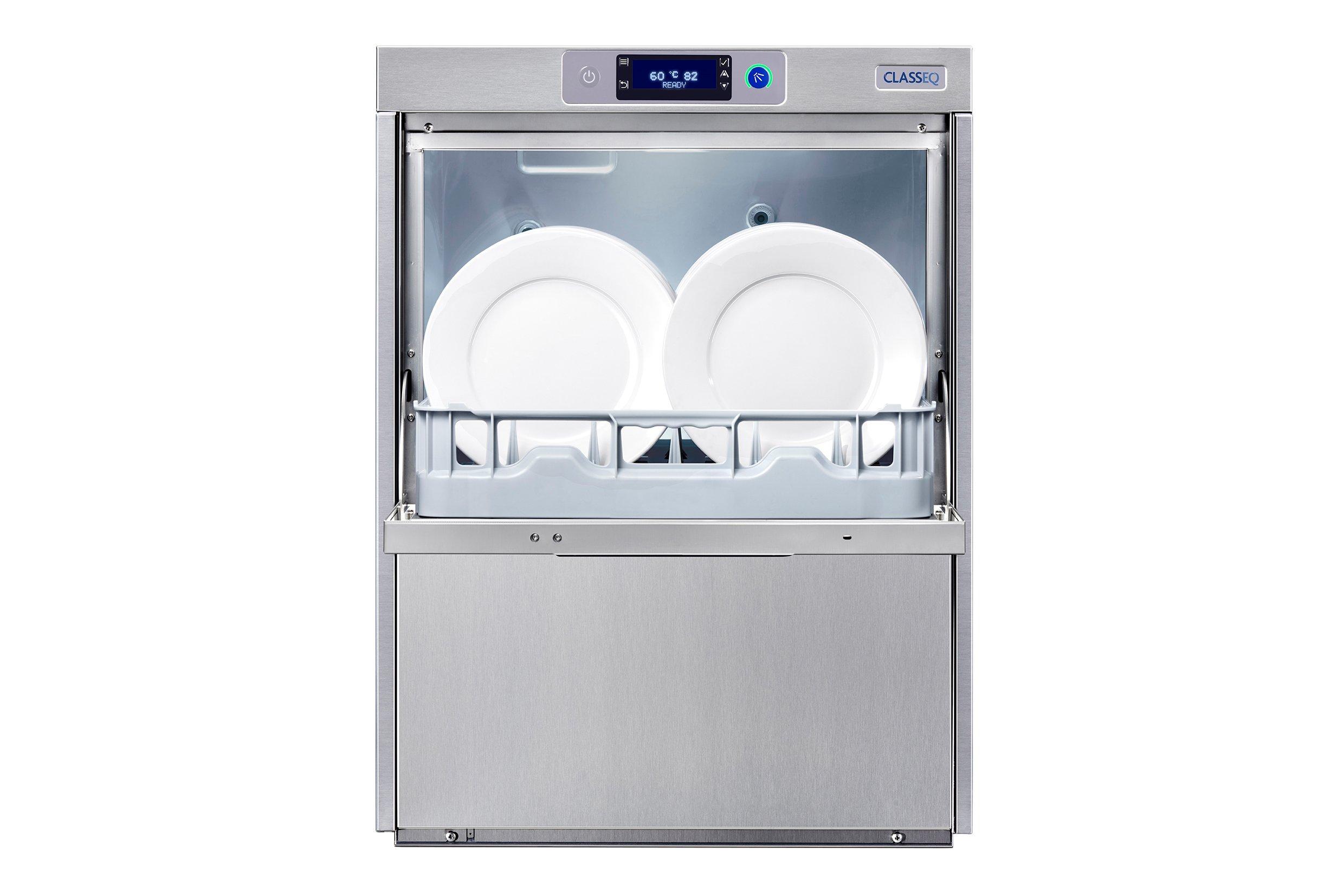 The New Classeq CP500 Pass Through machine forms part of the new generation of simple and robust warewashers from Classeq. Designed to bring simplicity to high-volume warewashing, the CP500 is easy to set-up, use, clean and service. Easily configured for straight or corner locations, the CP500 can be commissioned as a dishwasher or glasswasher on site. As a dishwasher the CP500 can wash up to 720 plates per hour, and up to 1000 glasses per hour as a glasswasher. As a dishwasher there are four wash programmes, 1.5, 3, 5 and 7 minute wash cycles to choose from, including a new utensil wash programme. As a glasswasher there are two wash programmes, 1.5 and 2 minute wash cycles. Every CP500 model comes complete with a drain pump, rinse booster pump and detergent and rinse aid pumps as standard. Inside, the new CP500 has click-in and click-out wash arms and a double filtration system, plus deep clean and refresh cycles. All enhancing wash results and making the machine simple to clean. All CP500 models are supported by the Classeq Bluetooth App. Allowing operators and technicians instant access to user guides, machine settings, performance data and service information. This single phase, 30 amp machine has a 6.5kW loading ideal for everyday use. All CP500 models are WRAS compliant with a Type AB air gap, meeting water regulations. Note: If you�re located in a medium or hard water area you will require water softener, you can opt for the Classeq CP500WS with an integrated automatic water softener.