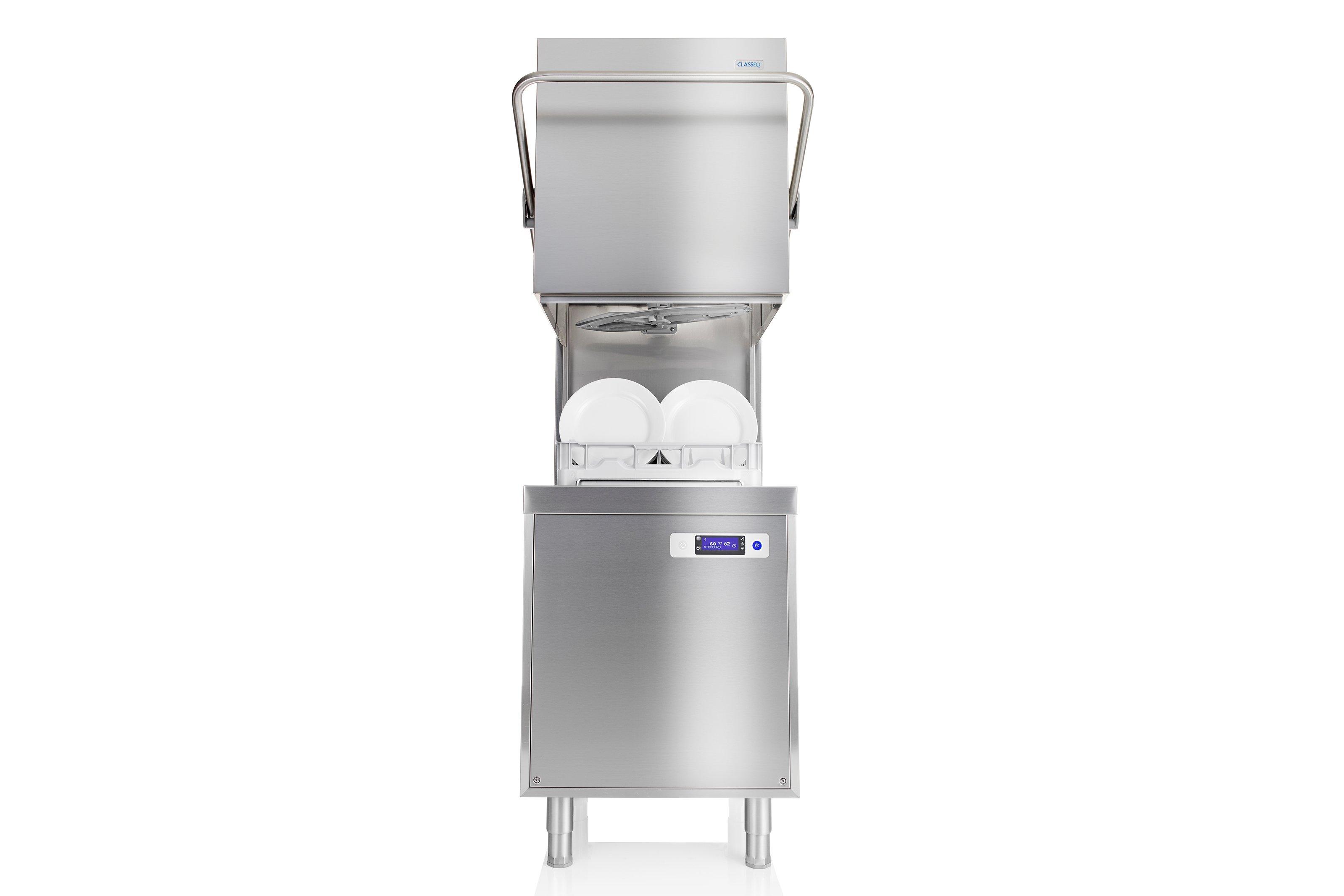 Can be commissioned as a dishwasher or glasswasher on site. Simply close the hood to start the cycle.