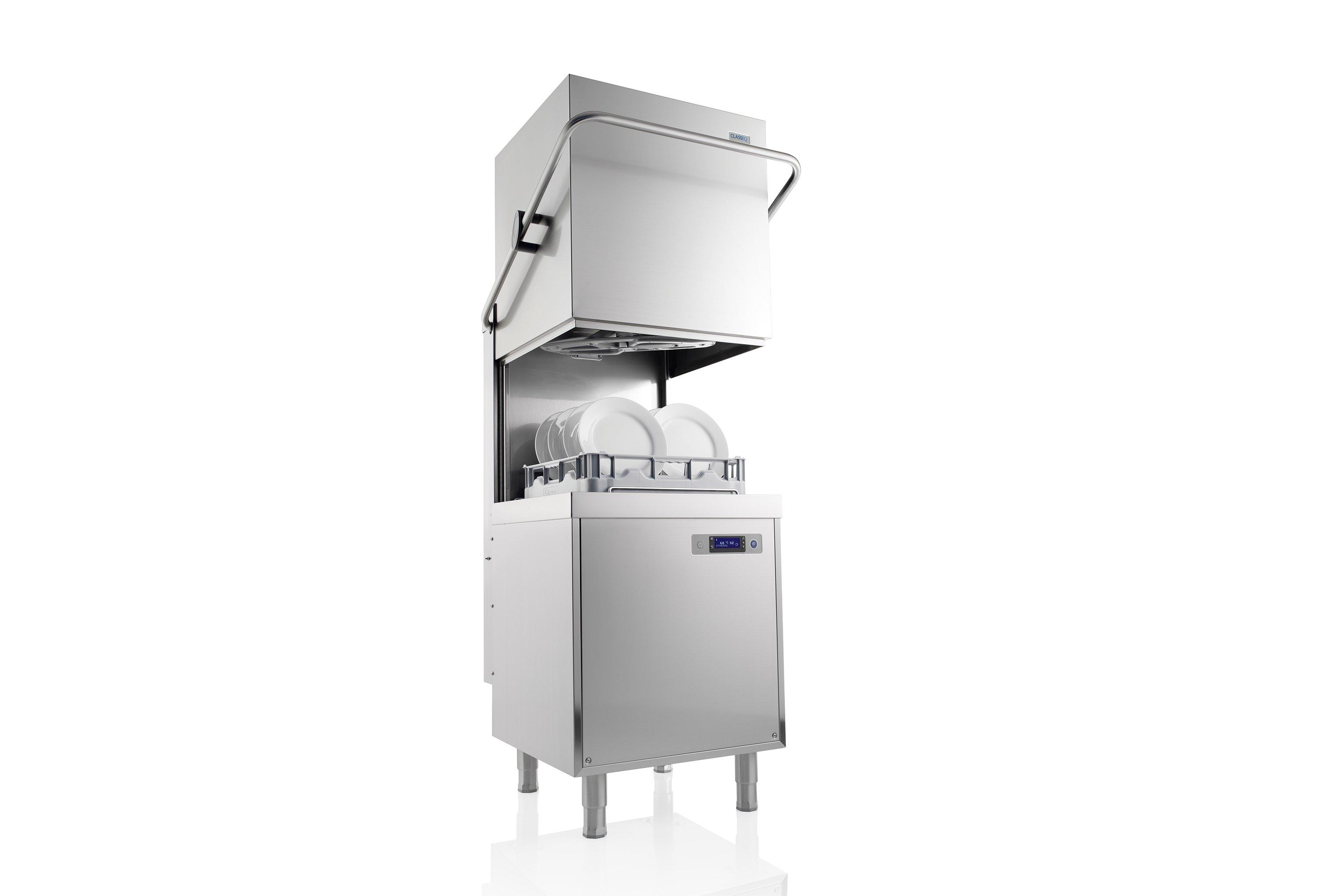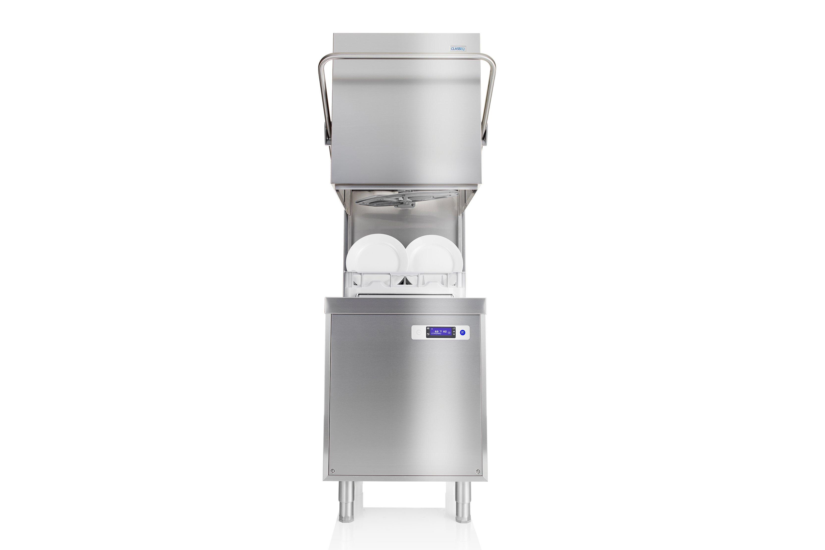 Can be commissioned as a dishwasher or glasswasher on site. Simply close the hood to start the cycle.