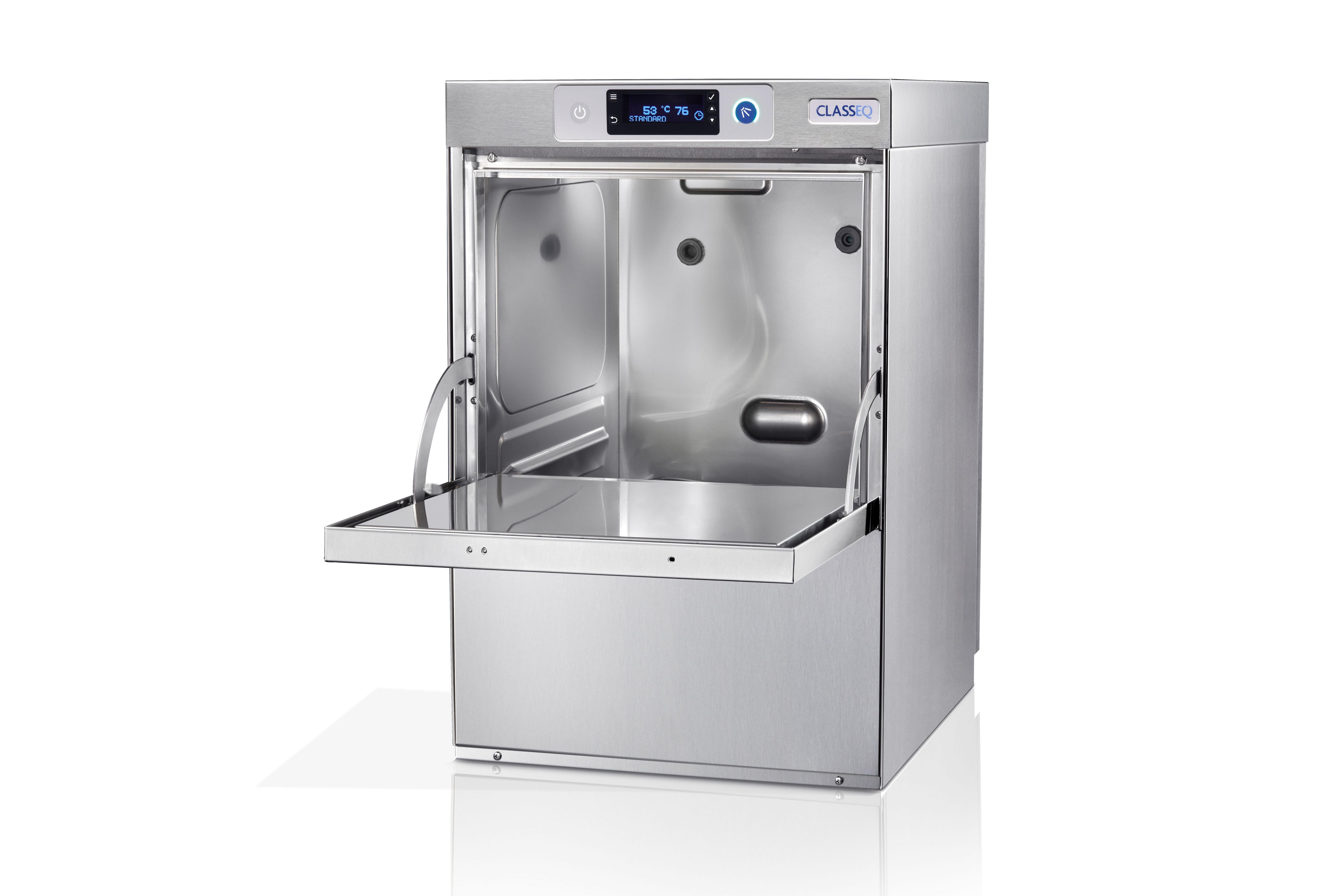 Including a high level of standard equipment every Classeq undercounter comes complete with a drain pump, rinse booster pump and detergent and rinse aid pumps with a double skinned door and cabinet to reduce noise and limit heat loss.