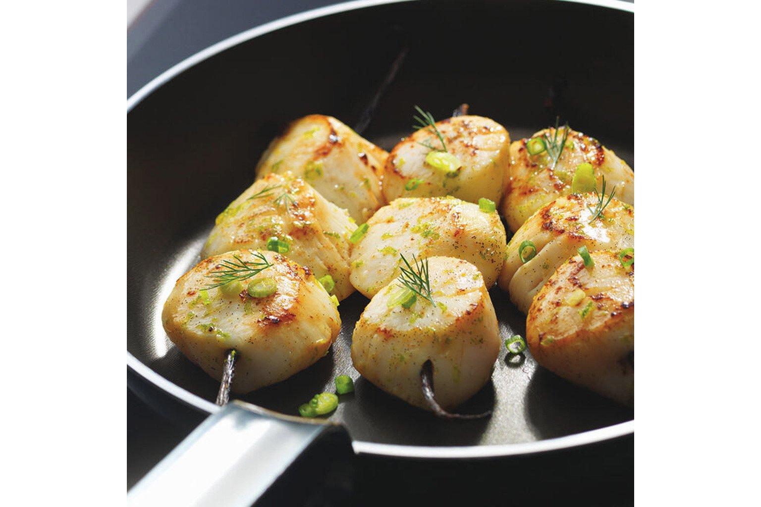 Non-stick aluminium for a good performance whilst being hard-wearing too. Compatible with all heat sources except induction hobs. Fast heat transmission and spreading energy. Very hard wearing four layer coating. Epoxy coated handle (heat resistance 150 degrees C maximum). Handle fixed with sturdy Teflon rivets, with hanging eye.