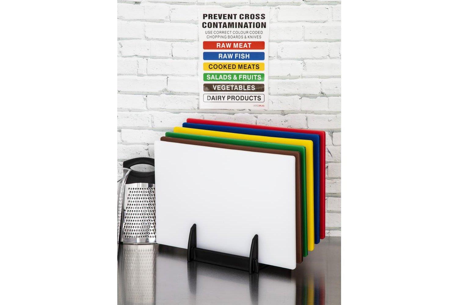 With all of the colour coded chopping boards in one handy and cost effective set, you can rest assured that your staff will be able to easily follow recommended food preparation guidelines. To help with this system the set also includes a laminated wall chart to enable all kitchen employees to familiarise themselves with the colour coded system.