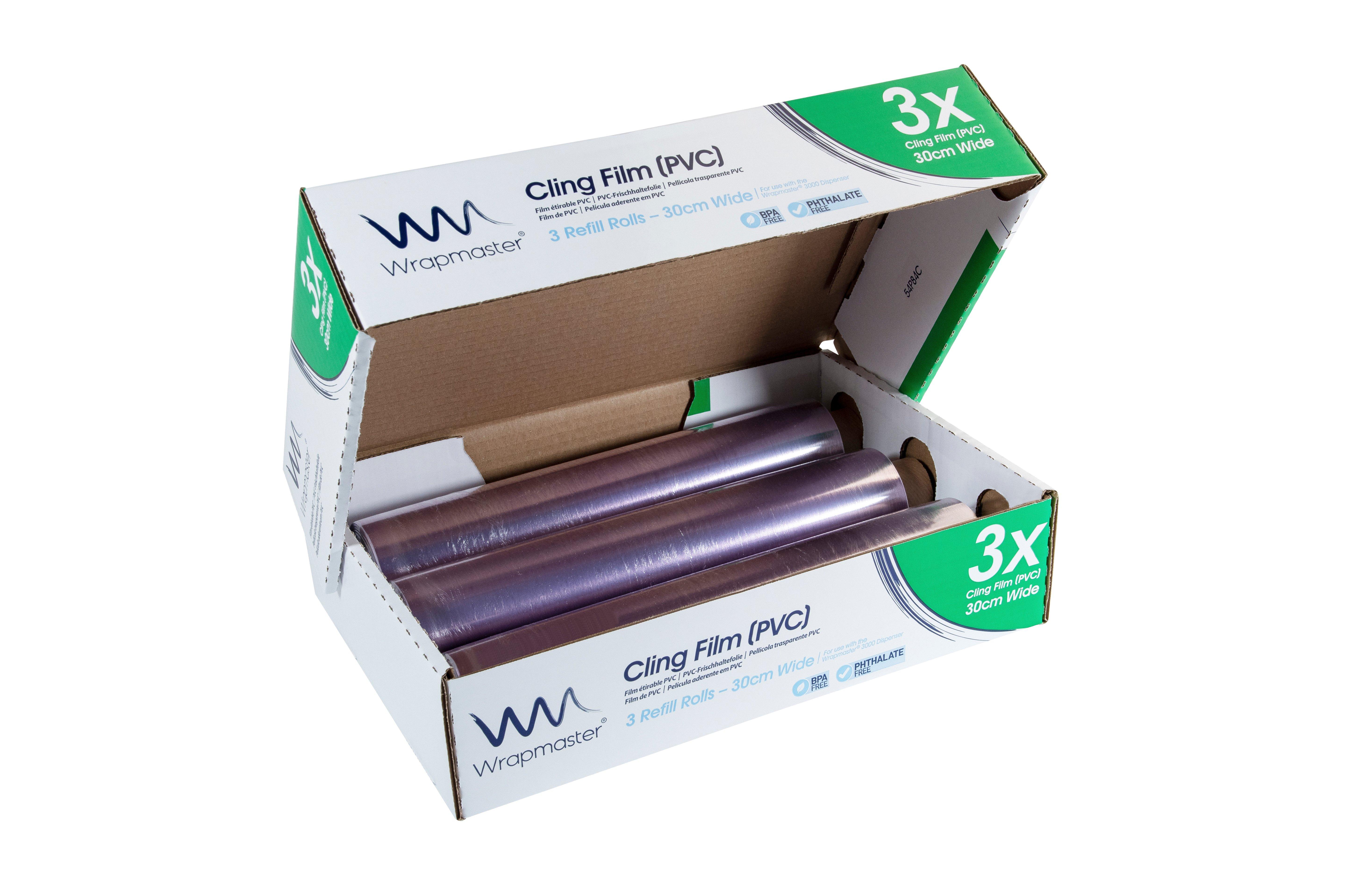 These Wrapmaster Clingfilm Refills are the ultimate solution to any catering establishment, perfect for hotels, caf�s, restaurants, deli's and much more. This pack features 3 Clingfilm Refills which are 30cm wide and 300m long making it great value for money. These Refills are made to specifically fit the Wrapmaster dispensers which are available here at Brakes.The Refills are made from great quality Clingfilm for long-lasting and a high performance. The Wrapmaster foil, baking parchment and greaseproof paper is also available here at brakes.