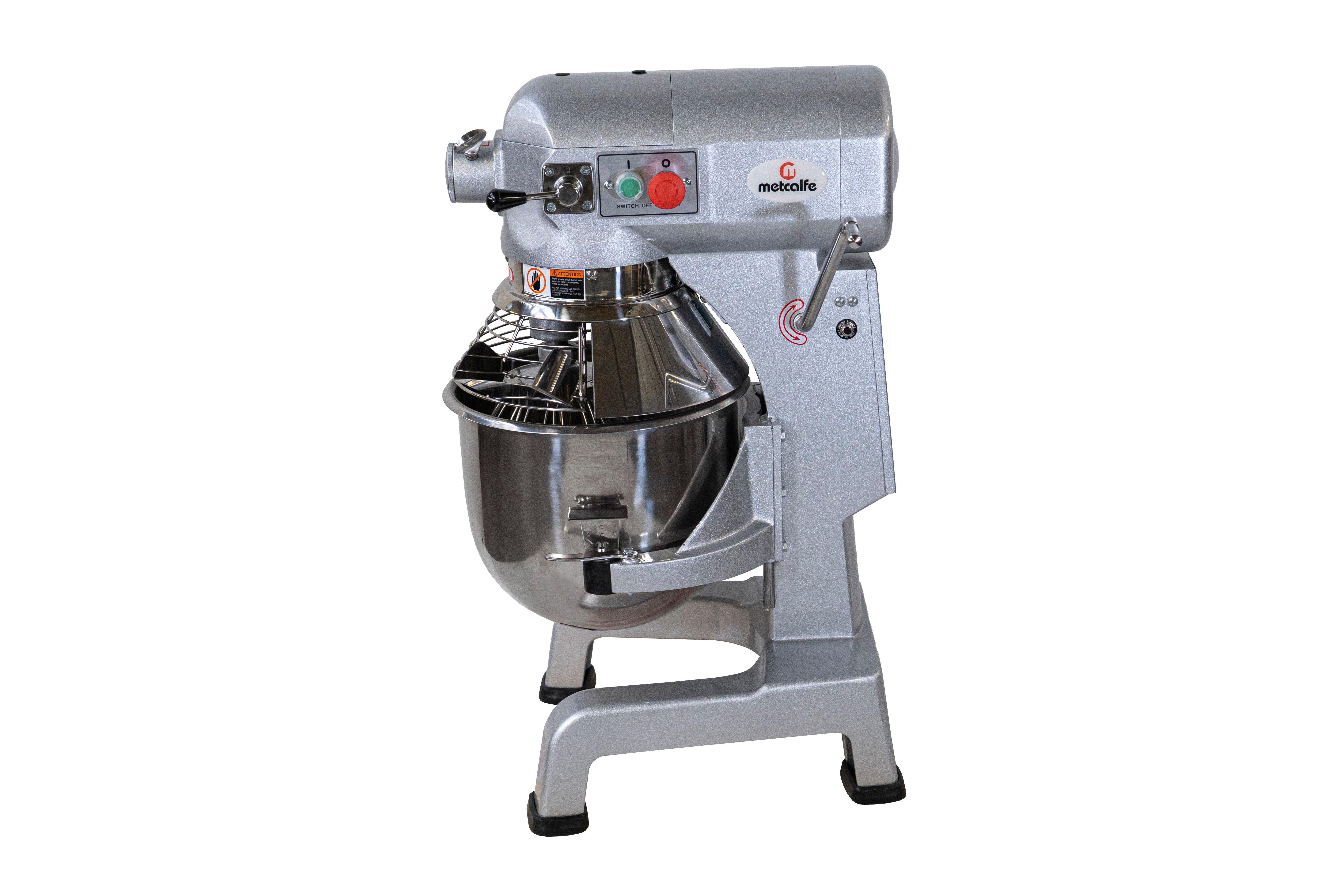 This and Metcalfe MP20 Heavy Duty 20 Litre Planetary Mixer also features a heavy duty all gear transmission with 3 speed settings, ideal for adjusting this mixer to different ingredients as well as light to heavier mixtures. The mixer also has a stainless steel guard which protects your hands during the mixing process and also helps to reduce any unwanted mess. The large stop button is ideal for safety reasons and automatically cuts out the mixer when pushed.