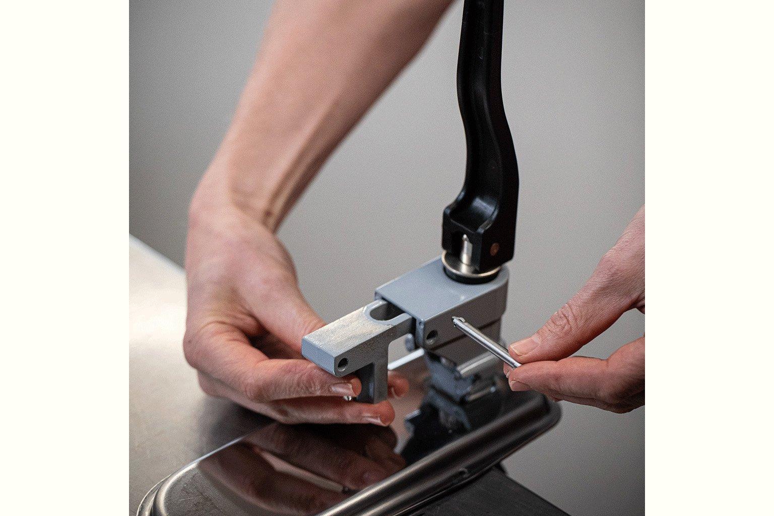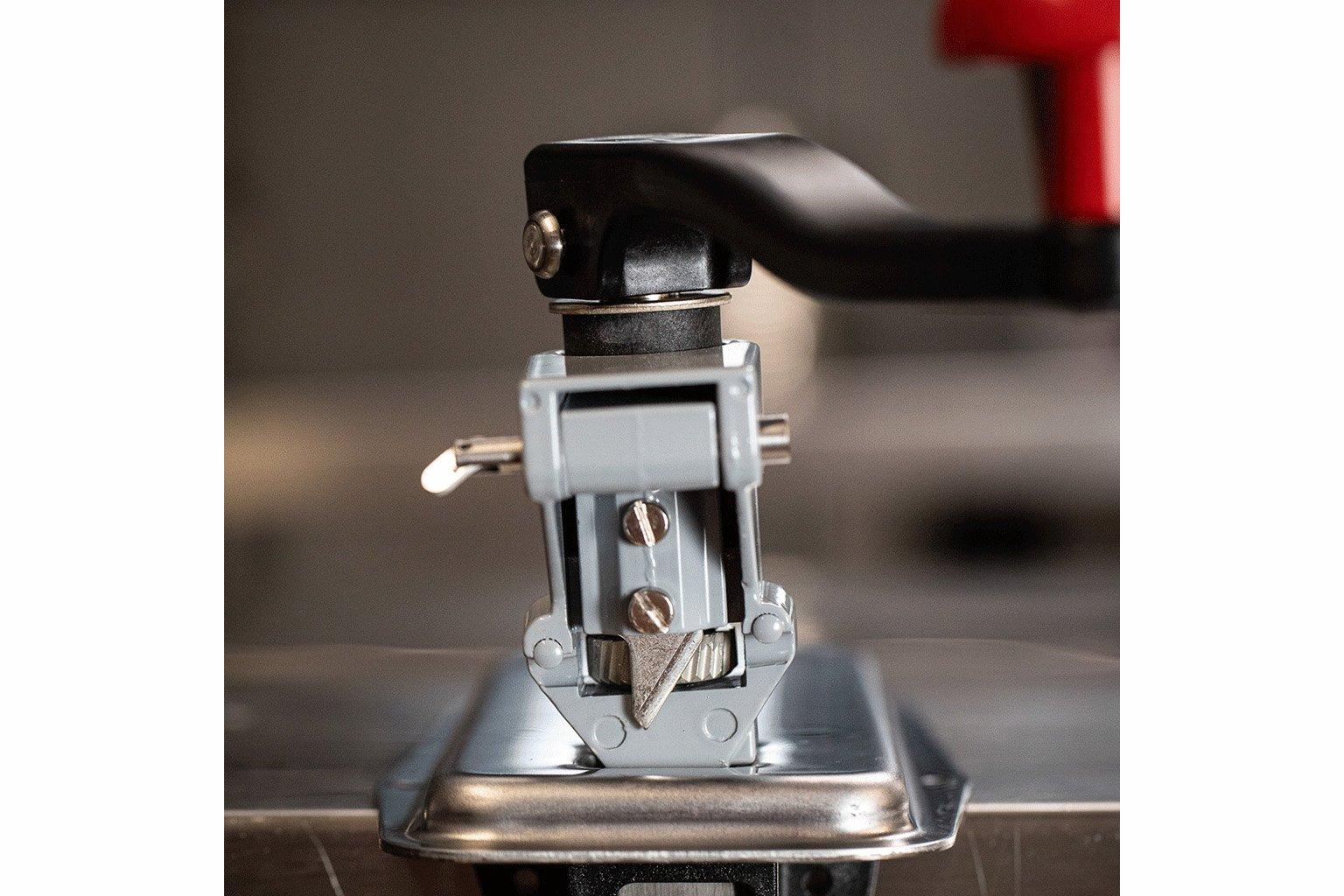 This Can Opener is bench mounted and has been designed with a removable blade to be easily taken apart for thorough cleaning. It is suitable for opening up to 10 cans per day.