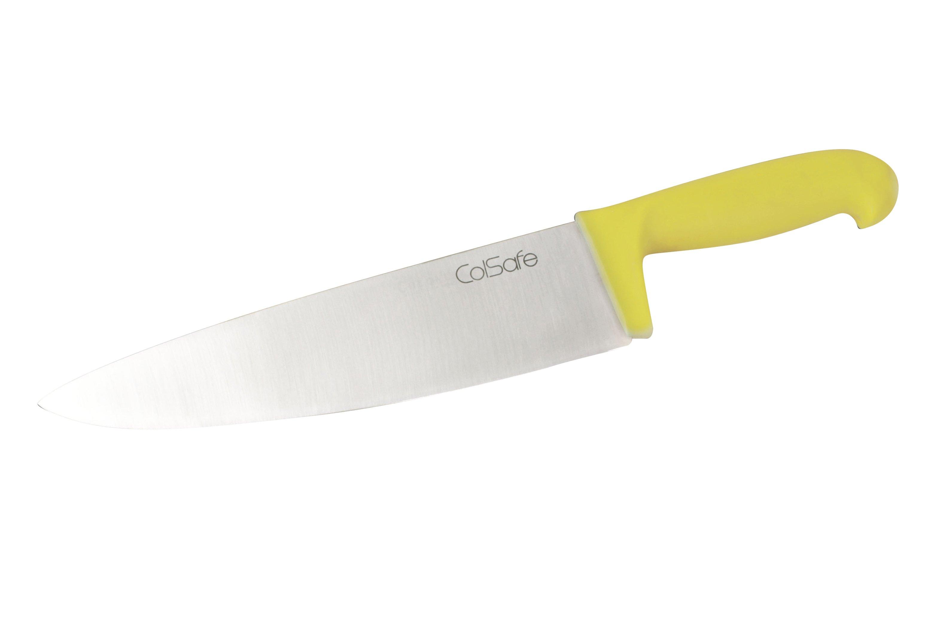 The yellow handle means that this knife is suitable for cooked meat. This Yellow Cooks Knife has a 25.4cm (10") blade. Other types of colour coded knives are also available here at Brakes.