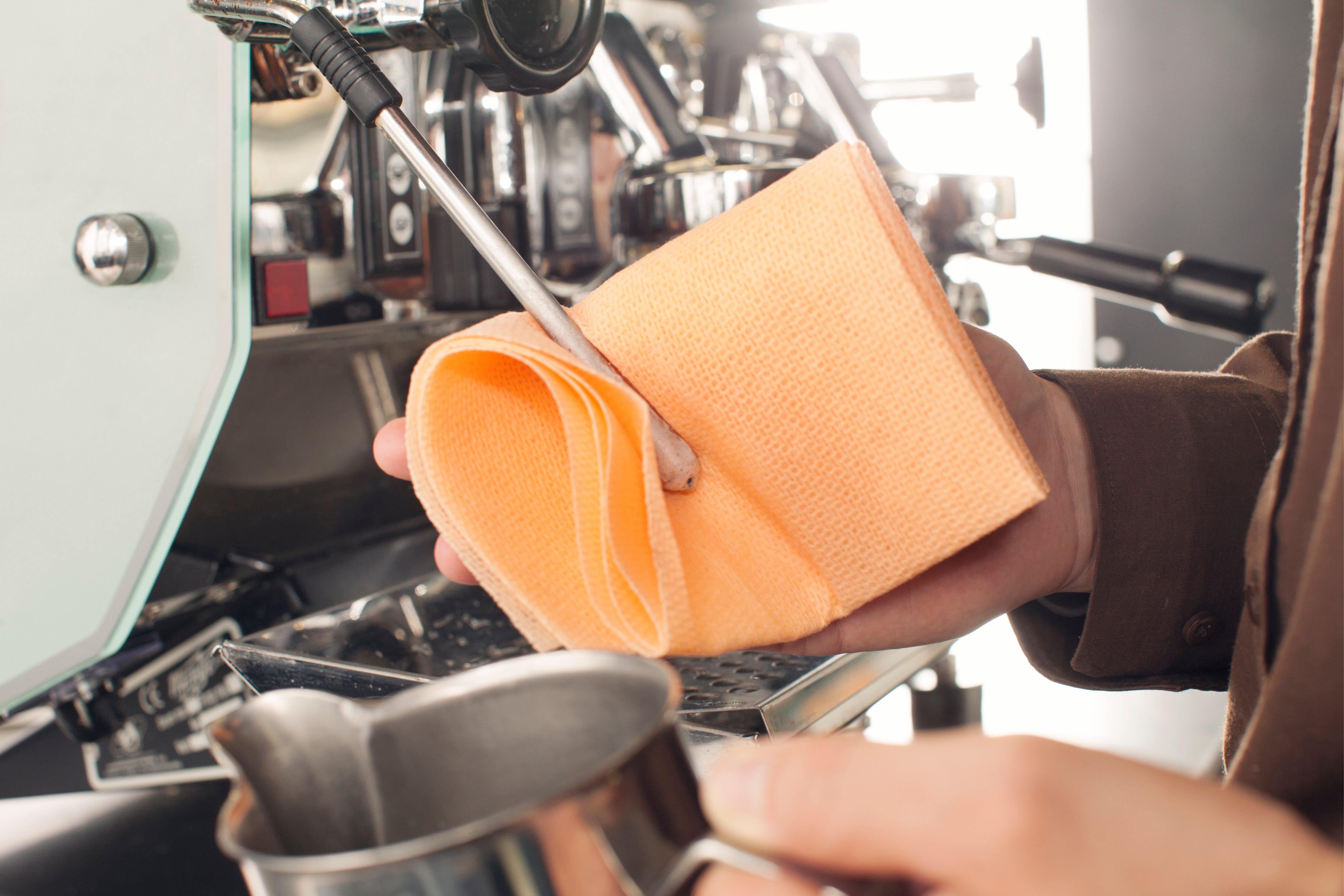 This Food Contact Clearance (FCC) approved towel, cleans the steam wand effortlessly, is HACCP approved, antibacterial, heat resistant up to 250C. Has a fast absorption speed is skin friendly, strong and durable. For the best cleaning results fold the cloth twice and use damp. Machine washable and reusable.< /p>