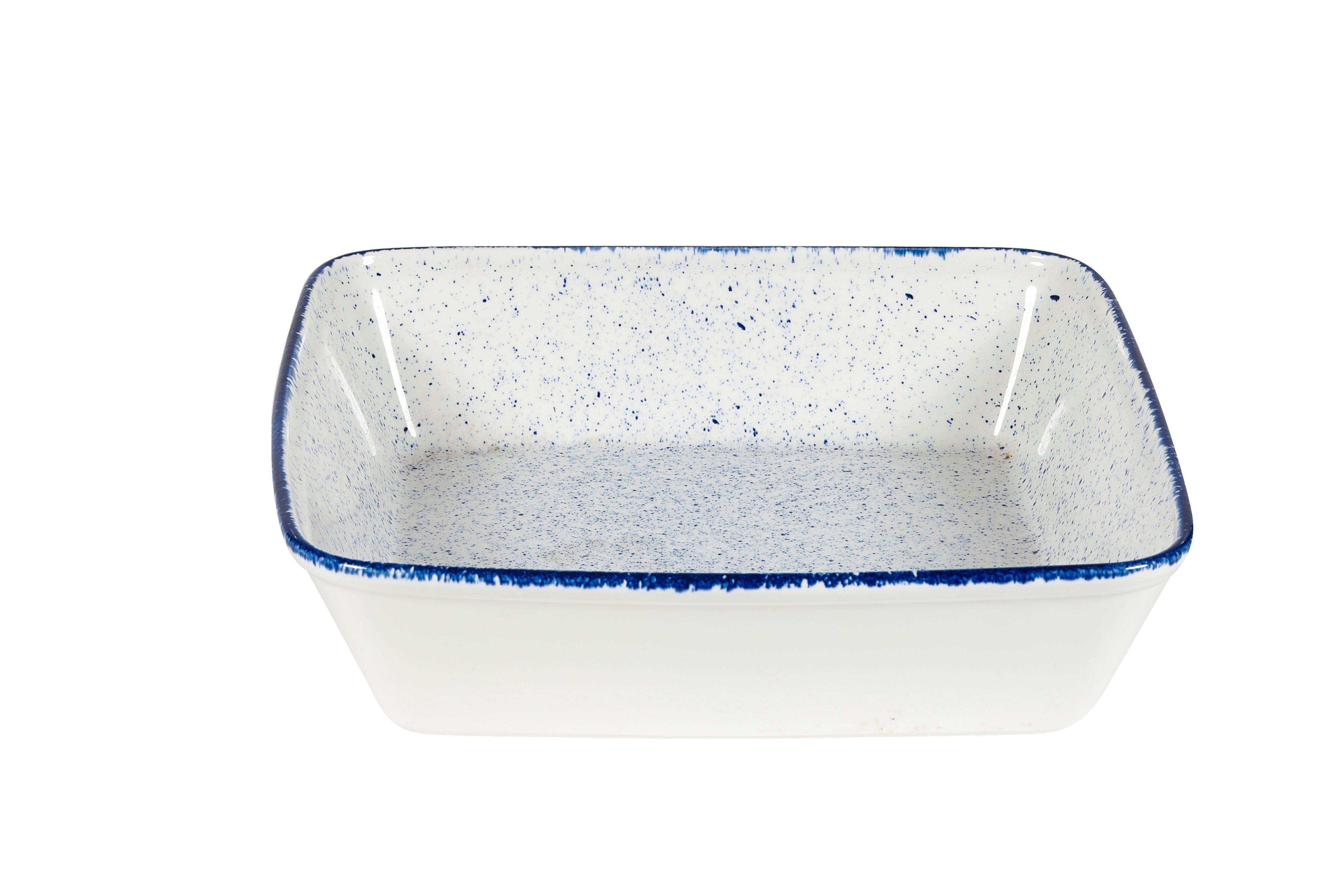 The dimensions of this Indigo Blue Counter Serve Rectangular Baking Tray are 25x25x6.2cm (10x10x2.5") with a capacity of 2ltr (70.4oz) and it is supplied in a pack of 6. It is also available in White and Barley White.