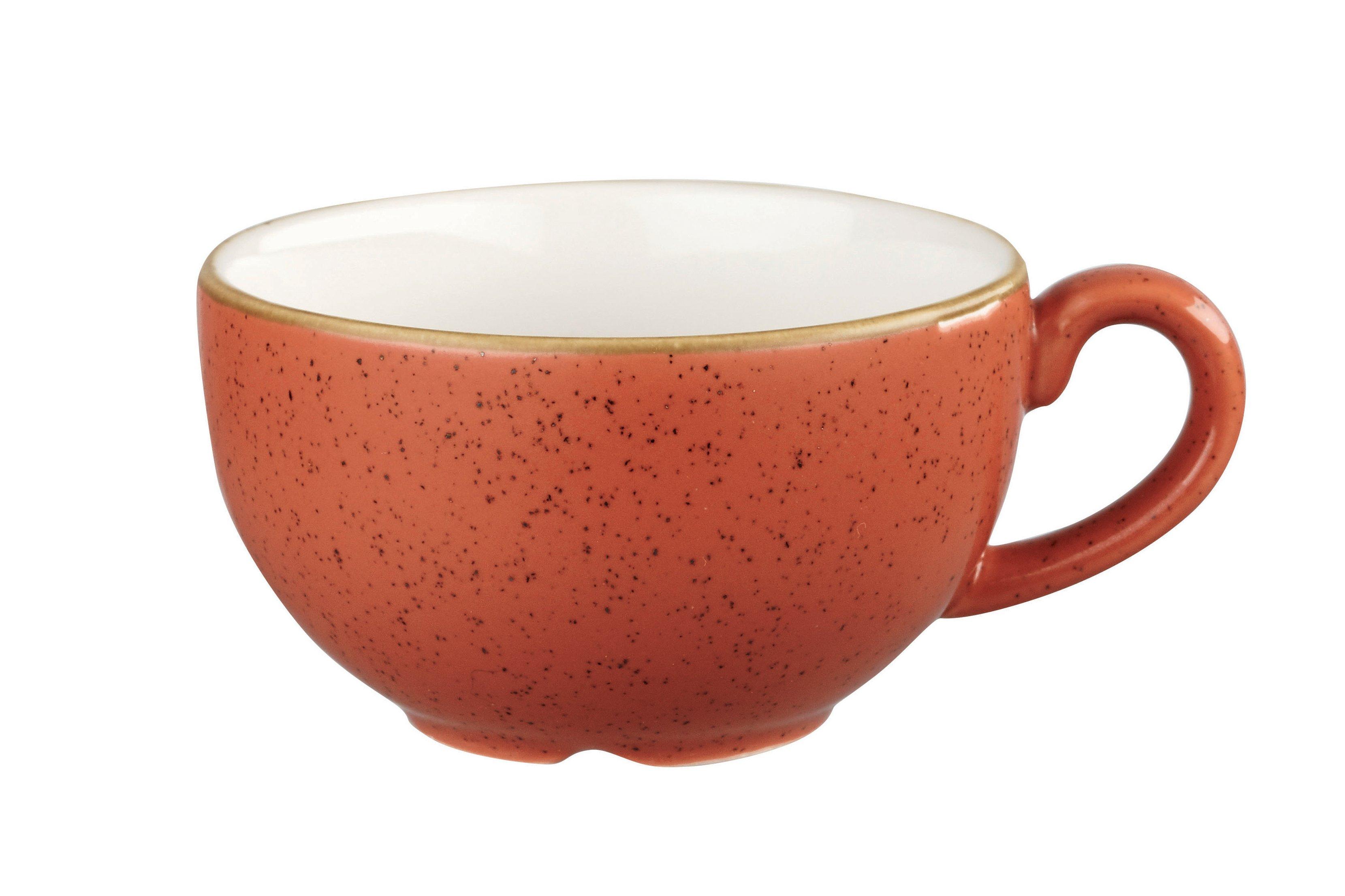 This Churchill Stonecast Spiced Orange Cappuccino Cup is part of the Churchill Stonecast range, it offers a rustic touch by combining texture and colour to this hand decorated range with a soft finish. The Stonecast range is a collection of items perfect for casual dining making them ideal in a variety of venues, including caf�s, restaurants and tea rooms.