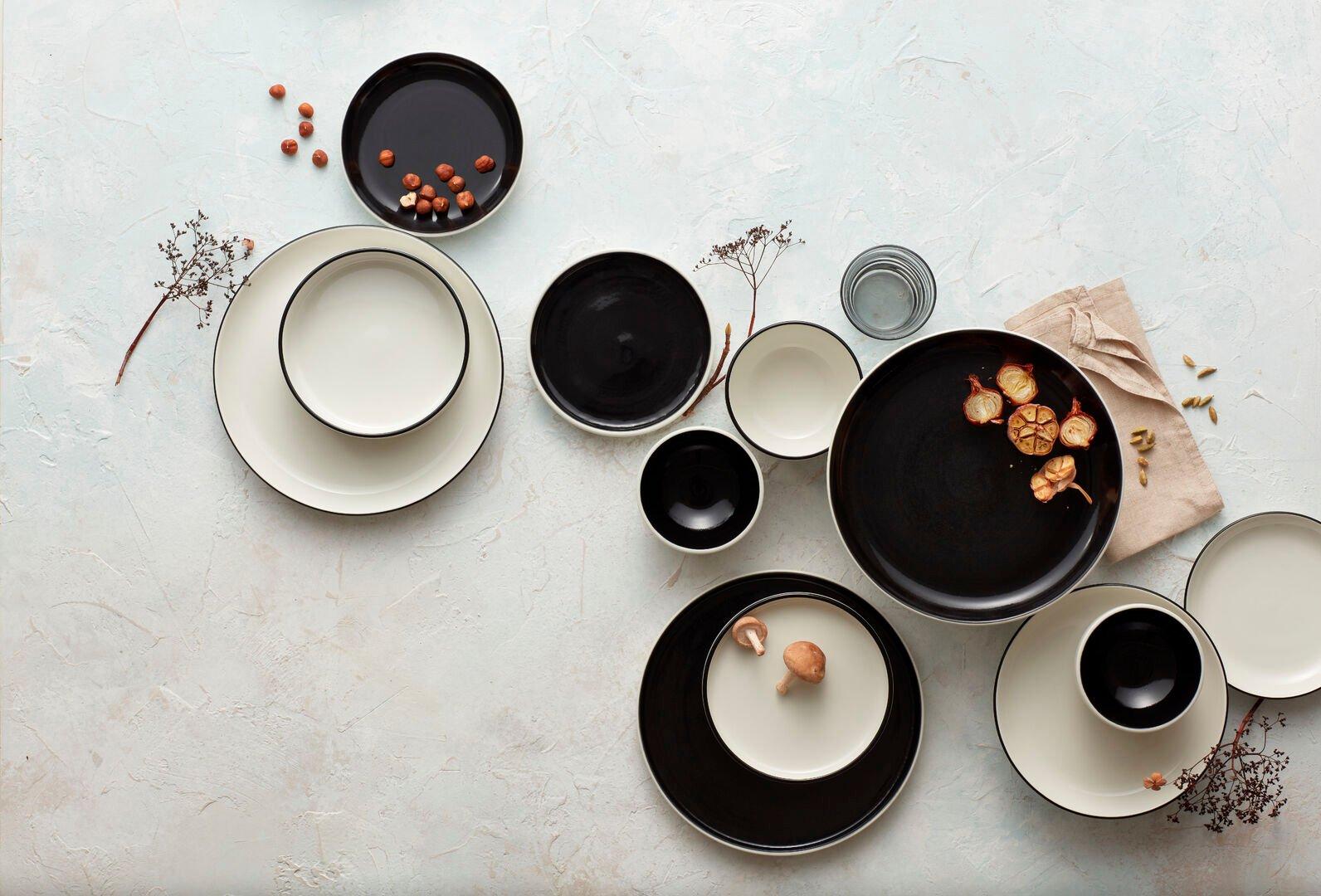 Asteria is an object lesson in minimalism. A pristine white surface allows Chef's creativity to shine unimpeded and the rimless profile maximises the plating area, allowing the elements of the dish to breathe. The deep black band constrains the presentation and draws attention to the plated food, adding focus and highlight.