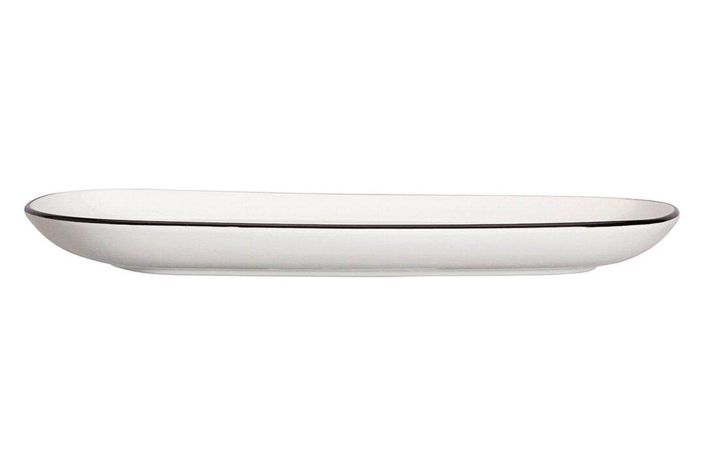 Size 34cm (13 1/2")Asteria is an object lesson in minimalism. A pristine white surface allows Chef's creativity to shine unimpeded and the rimless profile maximises the plating area, allowing the elements of the dish to breathe. The deep black band constrains the presentation and draws attention to the plated food, adding focus and highlight.