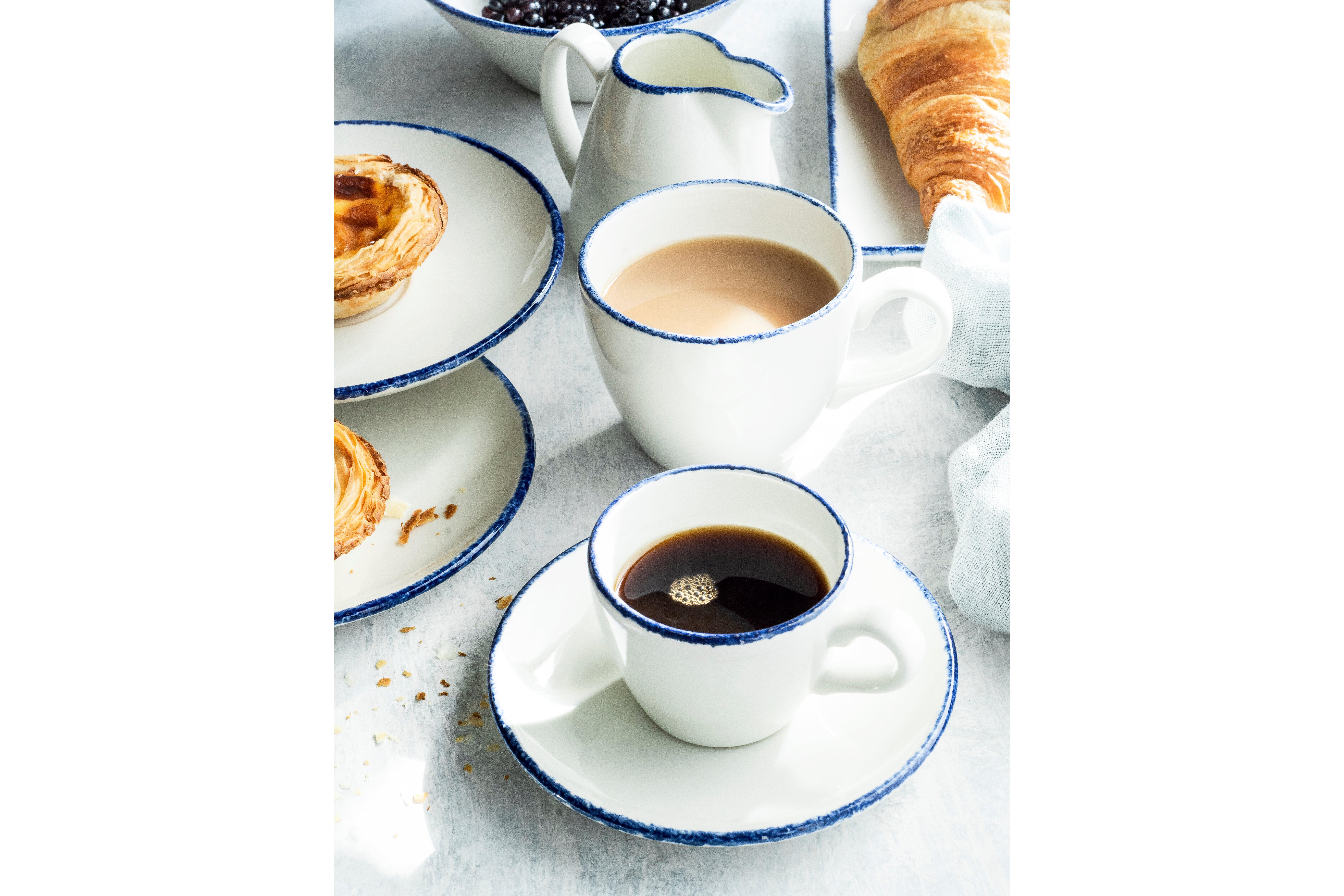 This Blue Dapple Cup Liv - 340ml is supplied in a pack of 24. It is dishwasher and microwave proof. The fuller range of Blue Dapple is also available from Brakes Catering Equipment.