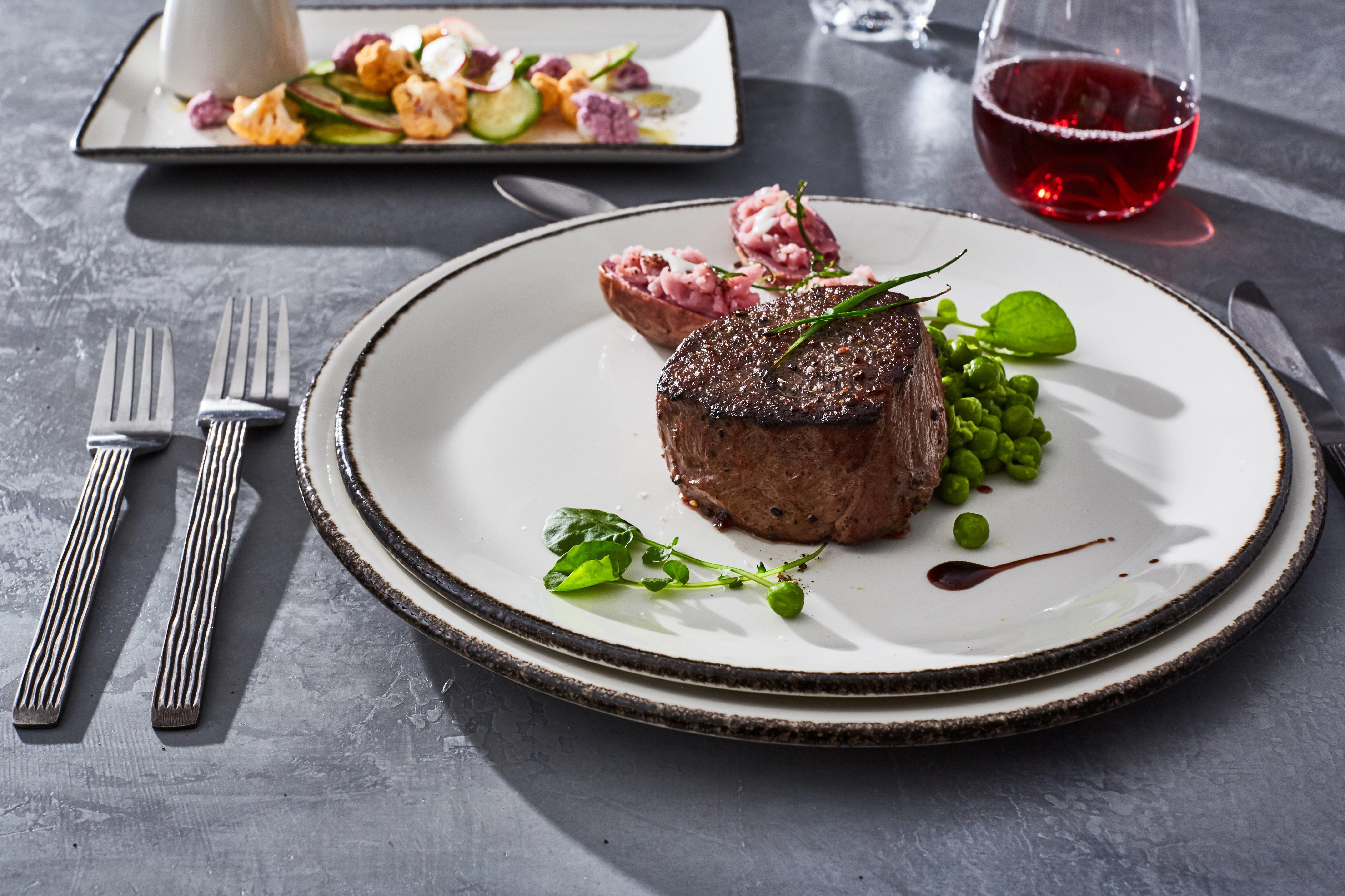 Charcoal Dapple adds a new dynamic within this established and successful family. This black reactive decoration creates a strong and confident statement, giving chefs a fantastic platform, in which the food presentation is amplified. Charcoal Dapple is perfectly positioned to work with all other decorated and white tableware ranges, which provides flexibility to bring through seasonal and menu changes. Careful consideration has been given to ensure all plating options are covered.