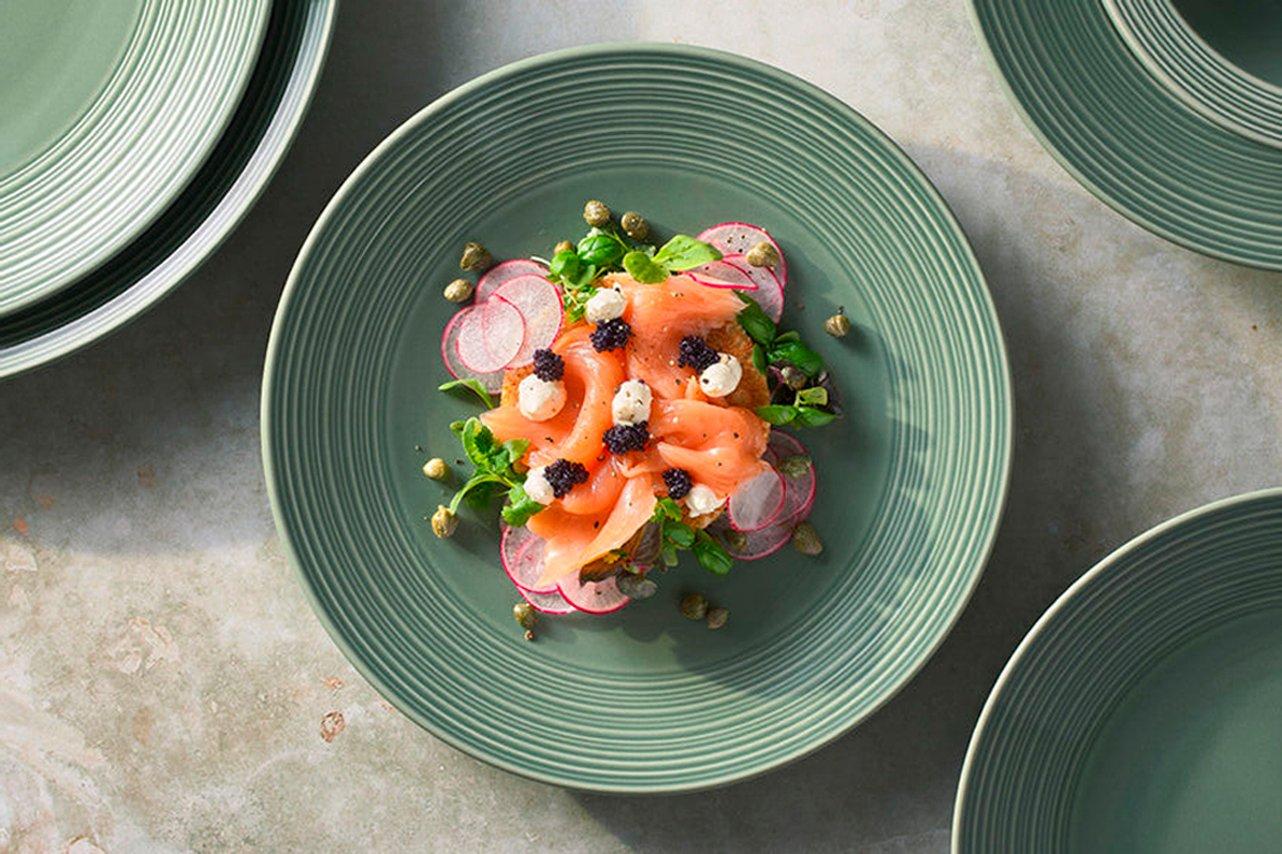 Following the recent success of the Concorde collection, Folio by Steelite is pleased to present two new colour ways, Midnight blue and Fern green. Green enhances the perception of farm-to-table dishes and often associated with freshness, nature, and organic elements. Whilst the blue tone is a popular colour in contemporary tableware trends, appealing to those who want a chic and modern aesthetic finish. It brings a bold yet tasteful look to the table, aligning with current design preferences.