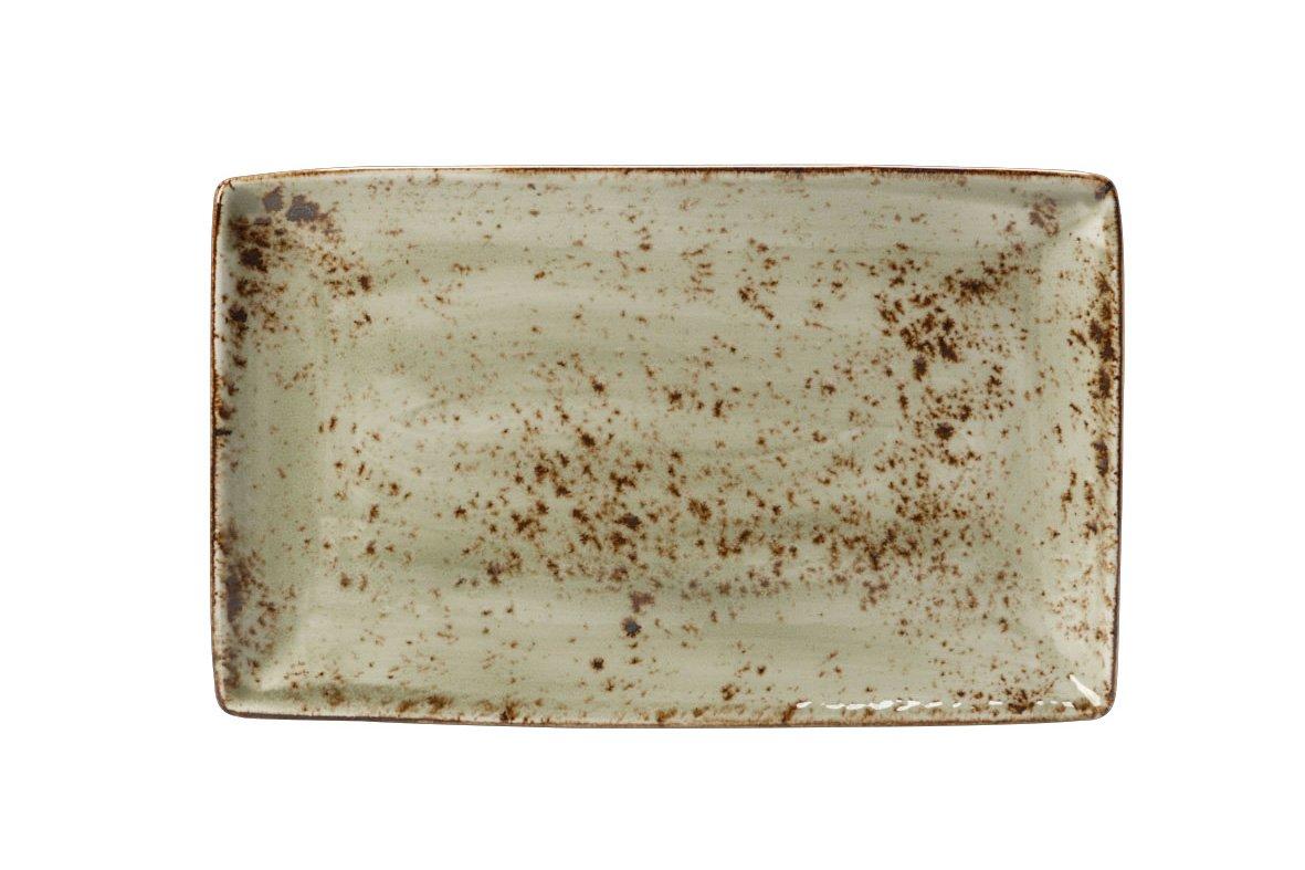 These Craft Green Rectangle Plate by Steelite feature a rustic glaze and embossed detailing that is ideal for hotels, guest houses or caf�/tearooms.