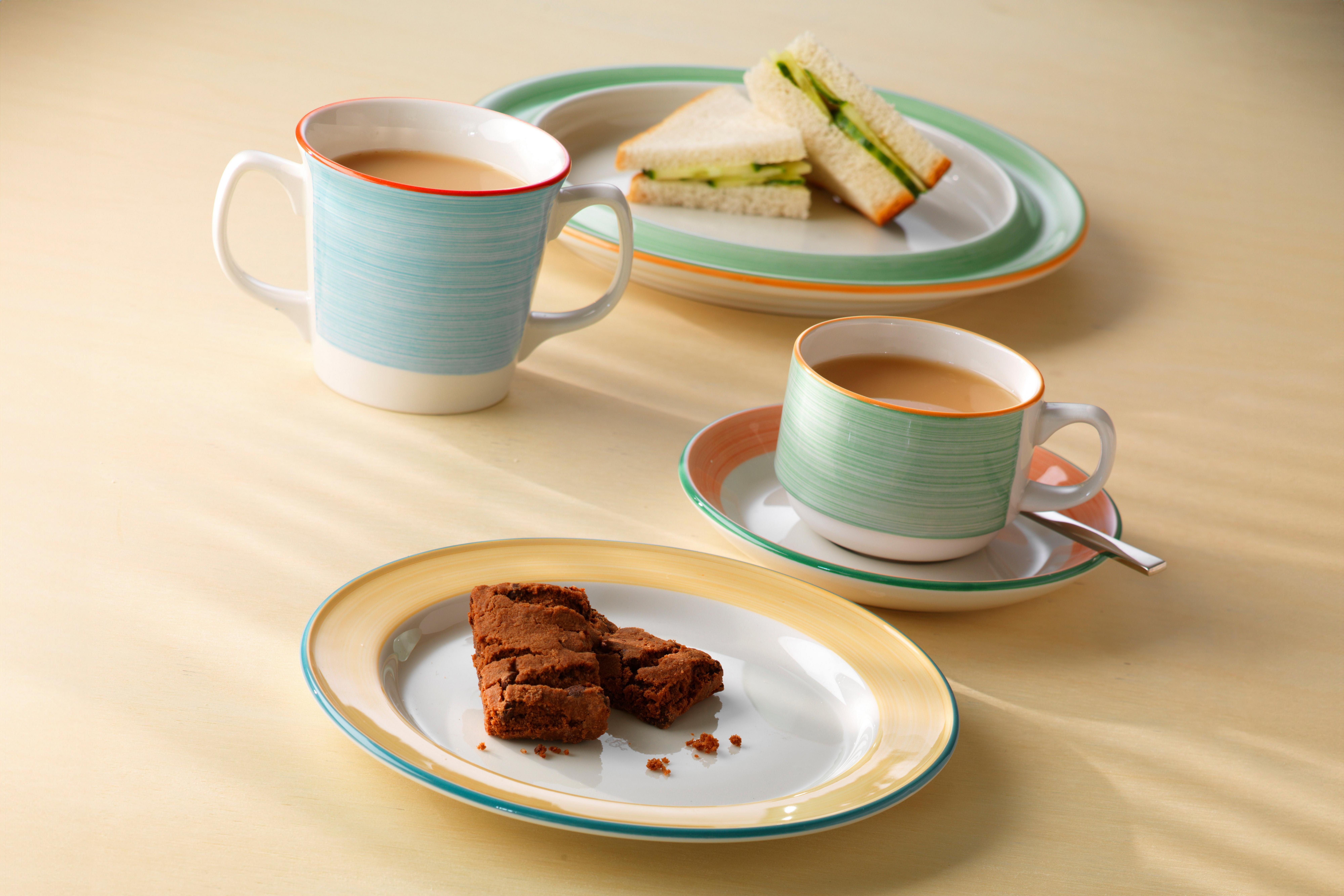 The Freedom range is made from a durable ceramic, which has a high thermal shock resistance and great heat retention. This Steelite range is also Dishwasher, Microwave and Freezer safe. It comes with a lifetime edge chip warranty and each piece of crockery has been designed for those with limited hand movement, ensuring that a better grip is made during use.