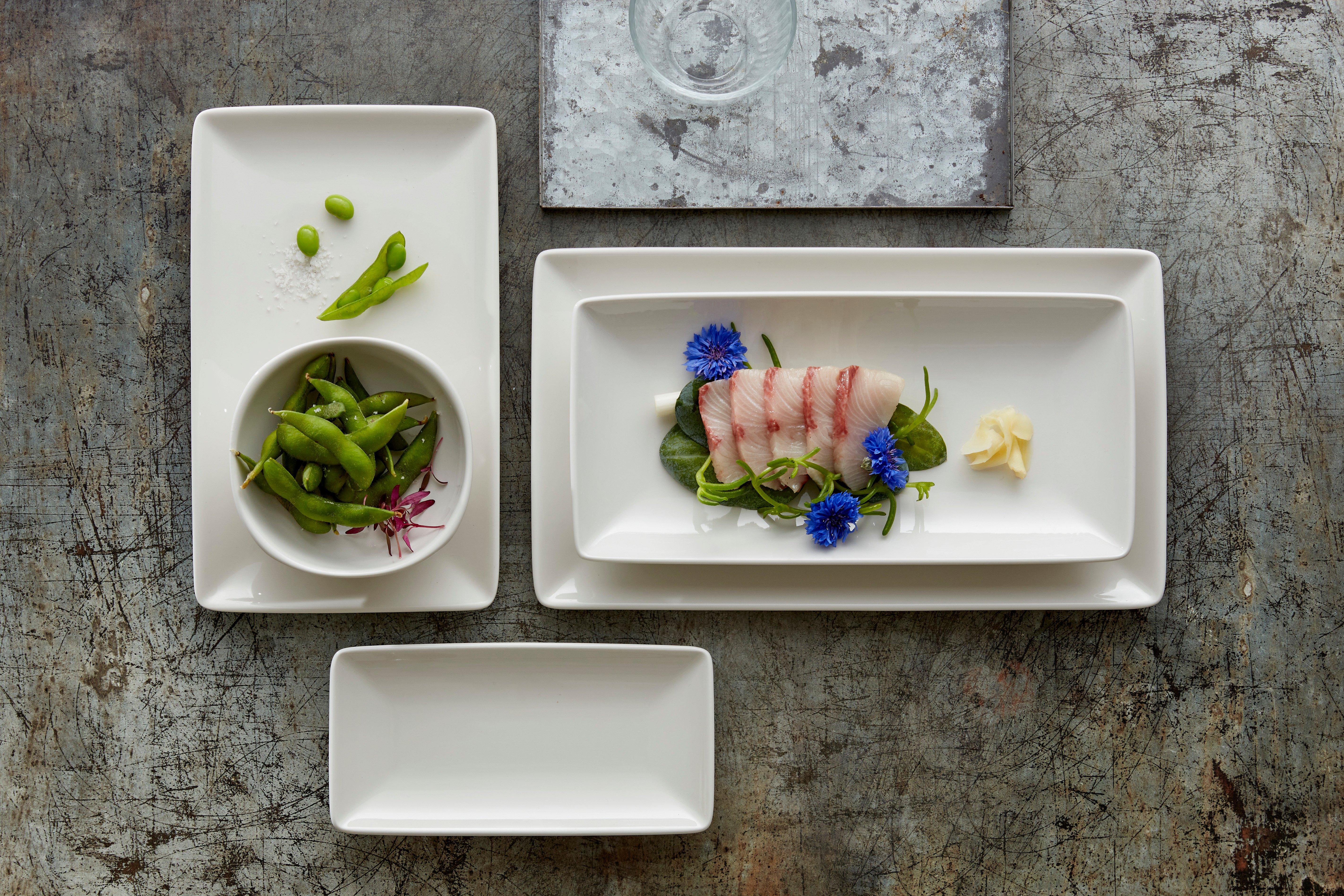 This rectangle one is 27x16.75cm (10.5x6.5") and comes in a pack of 6 making it great value for money. Other types of crockery from the Steelite Taste range are also available here at Brakes.