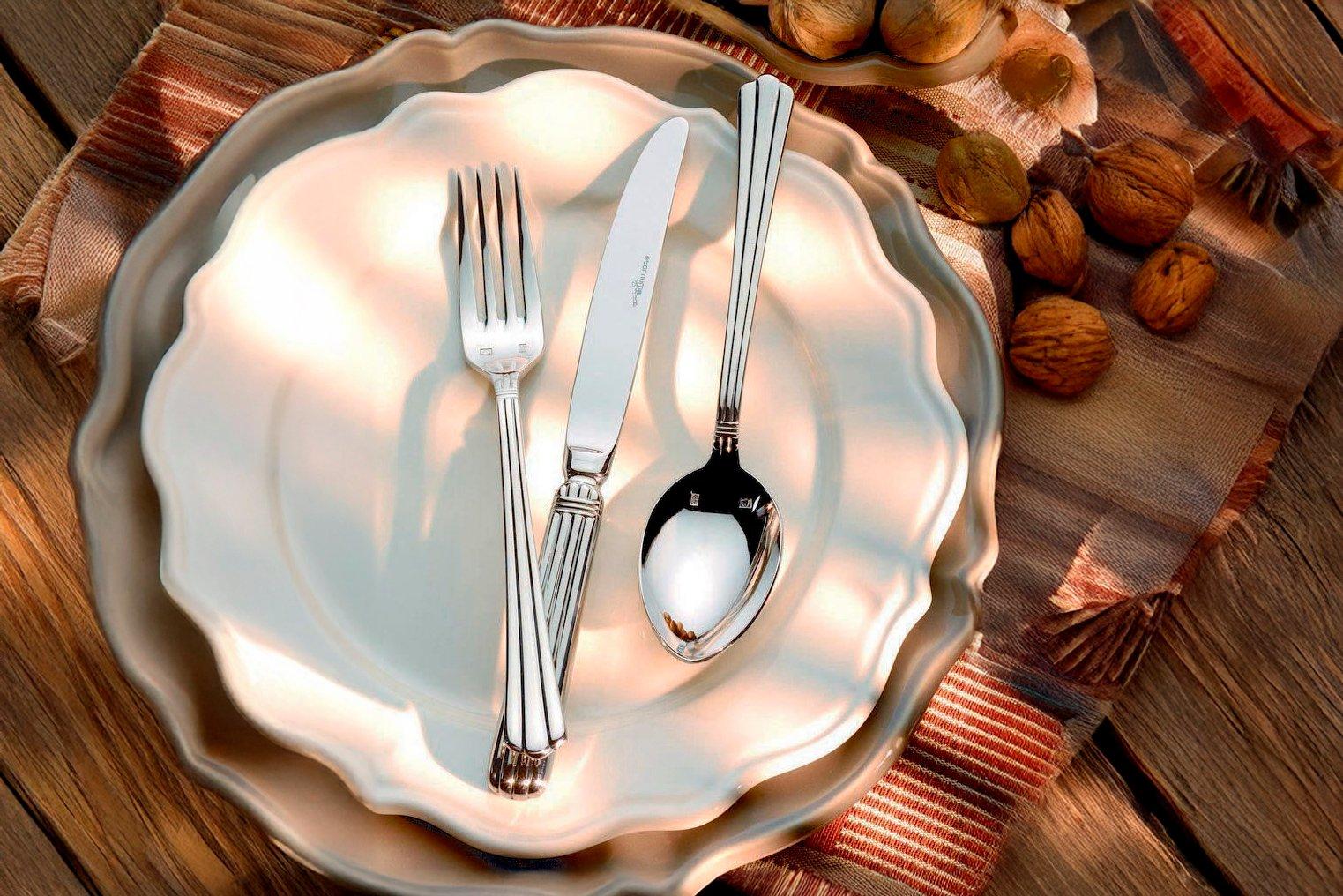 Marrying Elegance and Classicism Byblos by Eternum features a pronounced ribbed design to the handles, lending texture to fine dining settings.